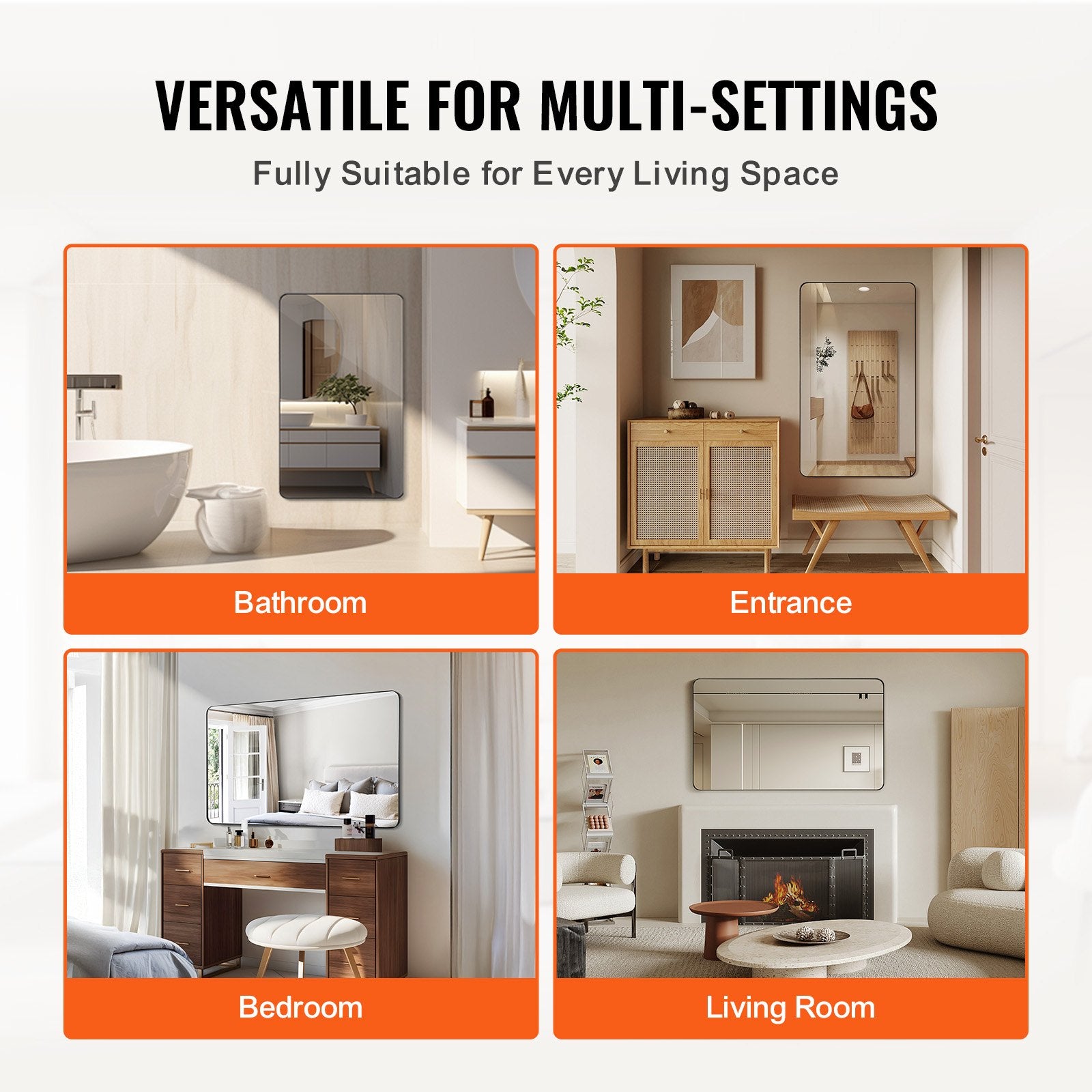- Flexible Montage für jeden Raum: Dieser Spiegel lässt sich problemlos in Badezimmern, Fluren, Wohnzimmern oder Schlafzimmern anbringen und fügt sich nahtlos in verschiedene Einrichtungsstile ein. Dank seines anpassungsfähigen Designs passt er sich optimal in unterschiedliche Raumkonzepte an.