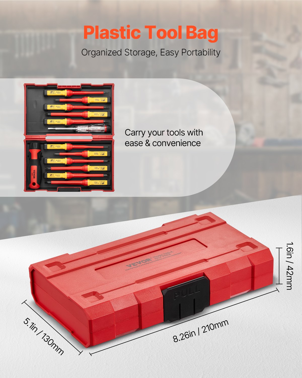 - 13-teiliges isoliertes Werkzeugset: Dieses 13-teilige Set isolierter Schraubendreher wurde speziell für die Bedürfnisse von Profis entwickelt und enthält eine Vielzahl unverzichtbarer Werkzeuge. Alle Werkzeuge sind VDE- und GS-zertifiziert und gewährleisten so eine hervorragende Isolationsleistung zur effektiven Reduzierung des Stromschlagrisikos.