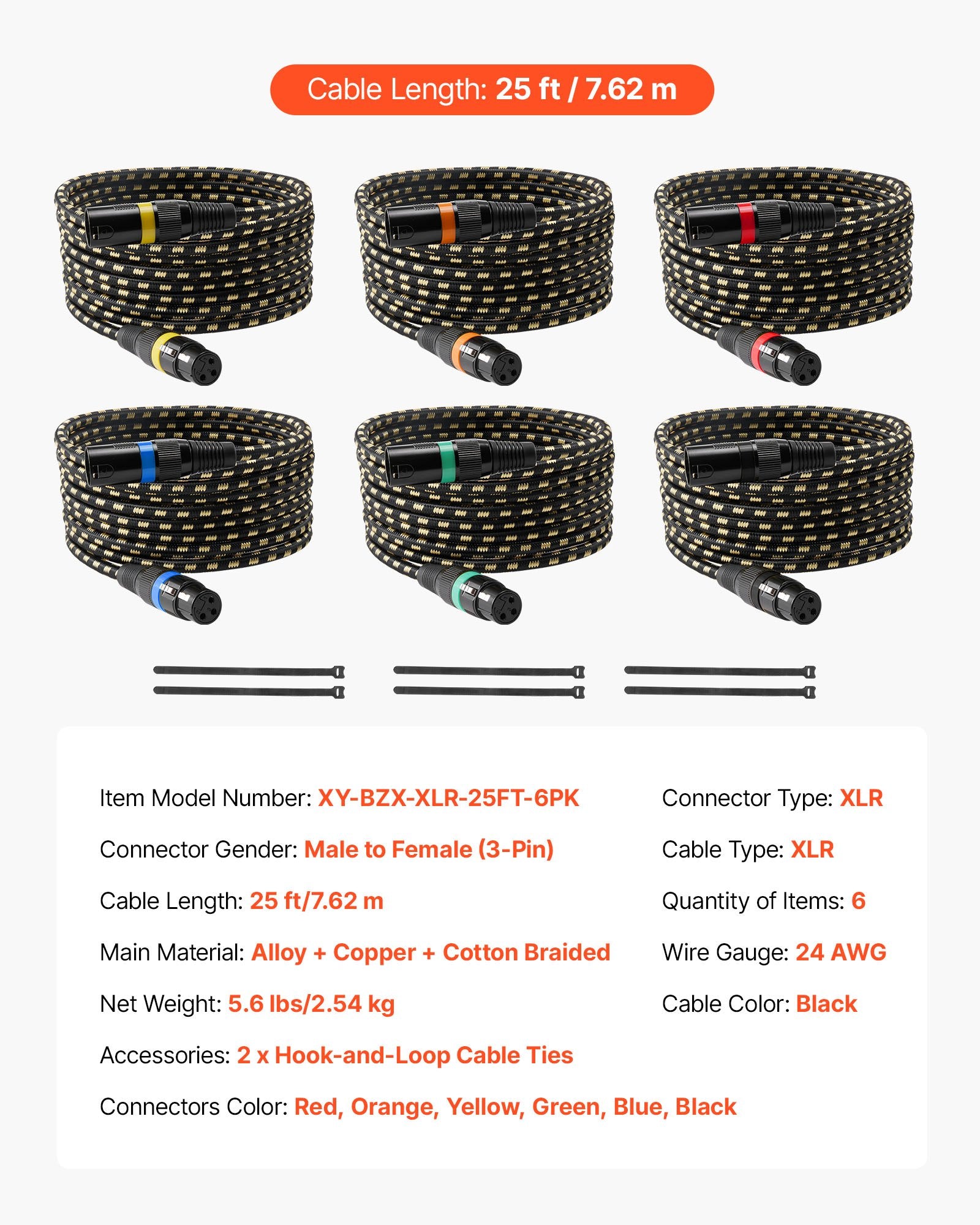 - Artikelmodellnummer: XY-BZX-XLR-25FT-6PK