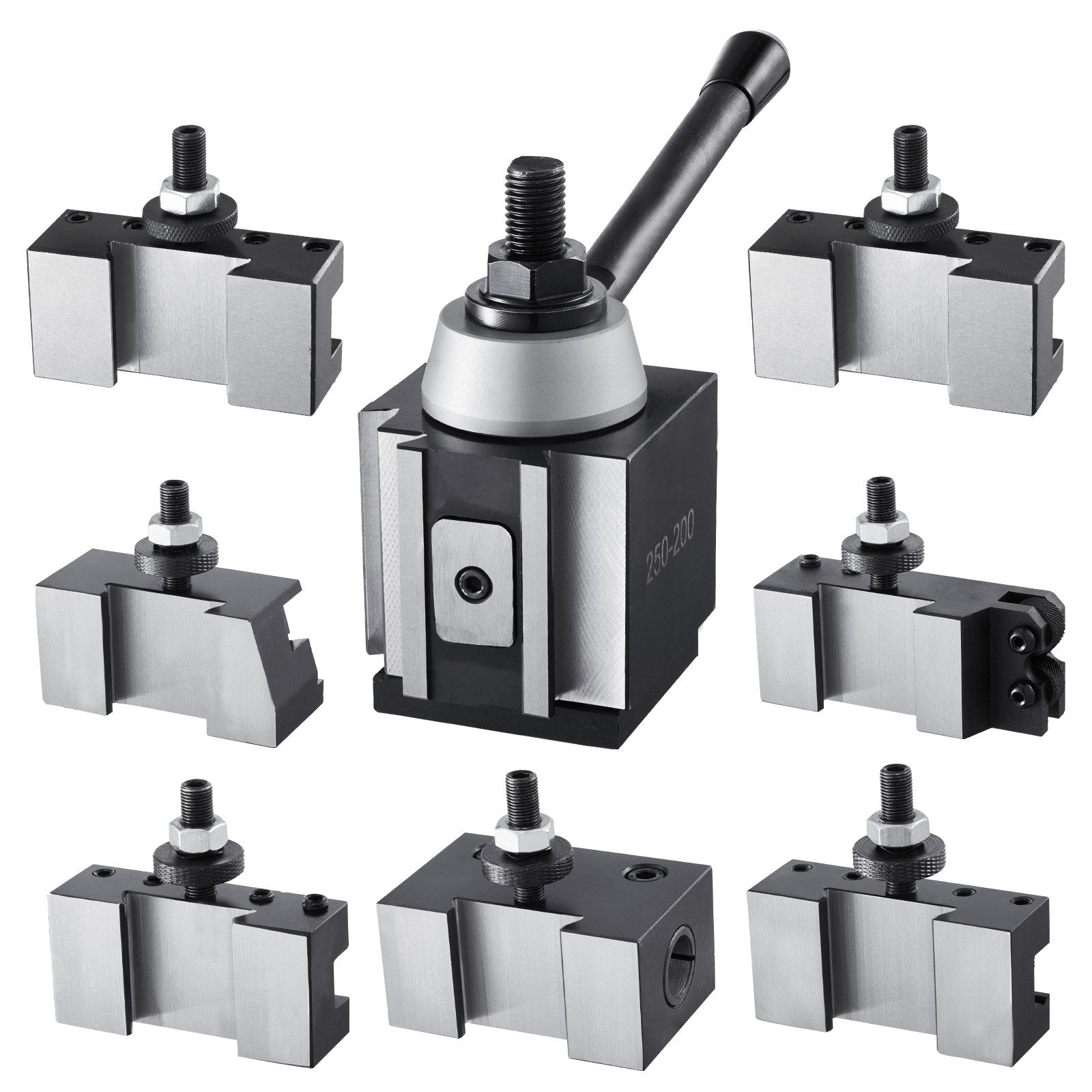 Schnellwechsel-Werkzeughalter-Set, 8-teilig, inklusive Drehmeißelhalter, Keil-Werkzeughalter mit Zubehör für Drehmeißelhalter, für Mini- und Metalldrehmaschinen mit 254–381 mm (10–15 Zoll) Drehdurchmesser, aus robustem Stahl