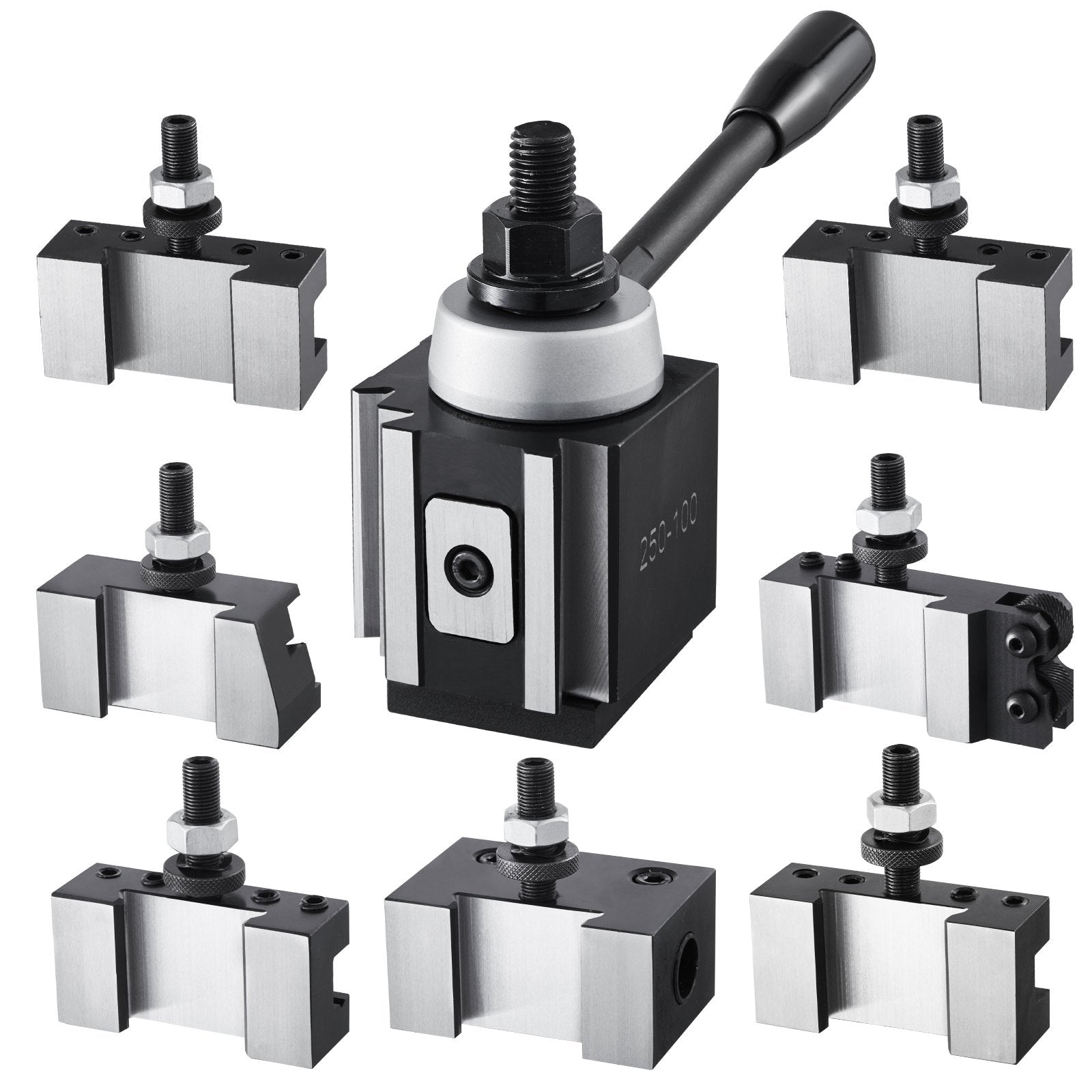 Schnellwechsel-Werkzeughalter-Set, 8-teilig, inklusive Drehmeißelhalter, Keil-Werkzeughalter mit Zubehör für Drehmeißelhalter, passend für Mini- und Metalldrehmaschinen mit 152–305 mm (6–12 Zoll) Drehdurchmesser, aus robustem Stahl