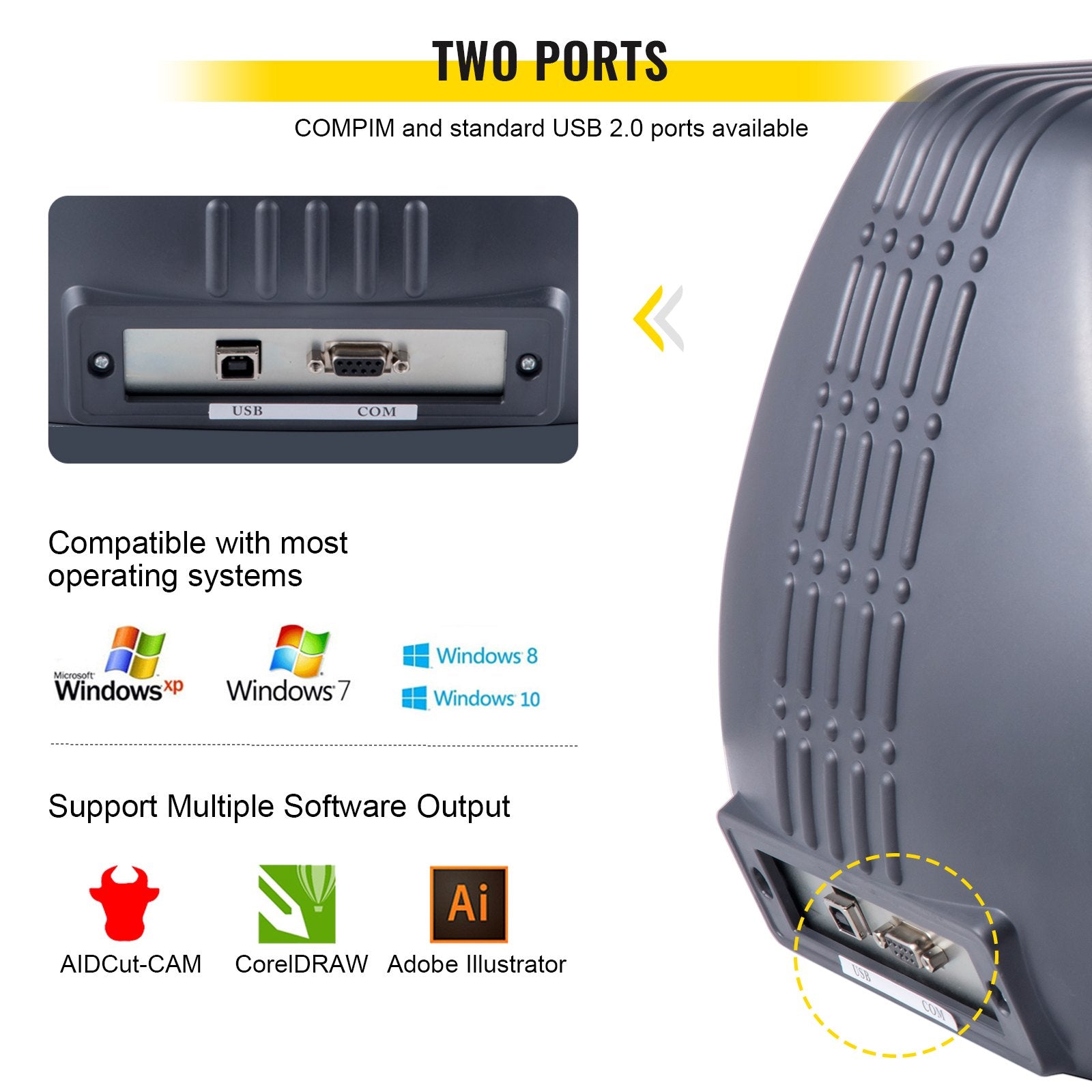 - 【HOHE KOMPATIBILITÄT】 – Verfügbar mit COMPIM- und USB-Schnittstelle für präzisere Steuerung. Unterstützt die Sprachen DM/PL und HP/GL. System: PC mit Pentium-Prozessor oder kompatibler Computer (Windows), Windows XP/Vista/7/8/10 (32- und 64-Bit). Nicht kompatibel mit Mac.