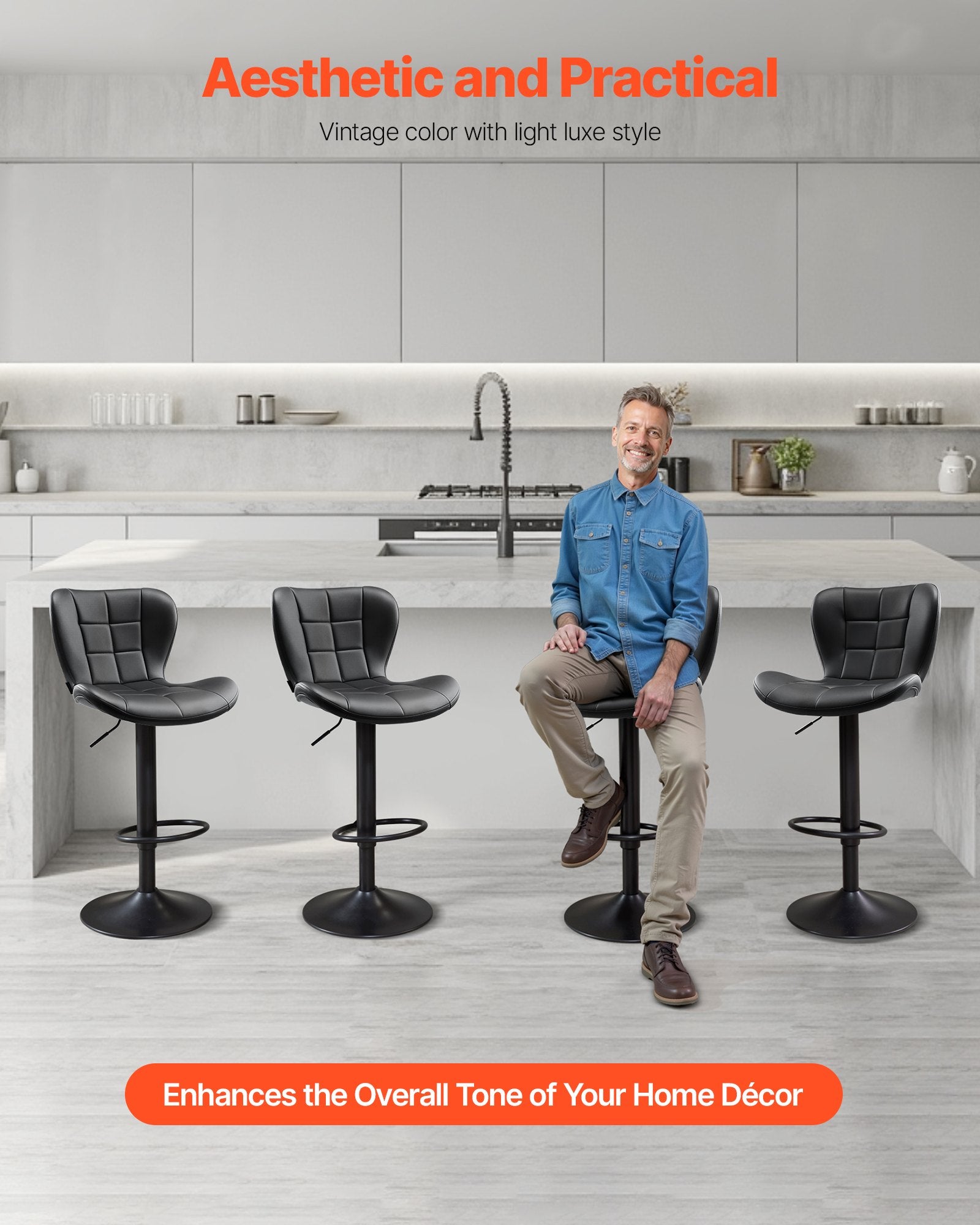 - Leichter Luxus und Vielseitigkeit: Das schwarze PU-Leder in Kombination mit der eleganten, geschwungenen Rückenlehne eignet sich sowohl für private als auch für gewerbliche Räume. Die Standard-Sitzhöhe passt auf gängige Bartheken und Kücheninseln.