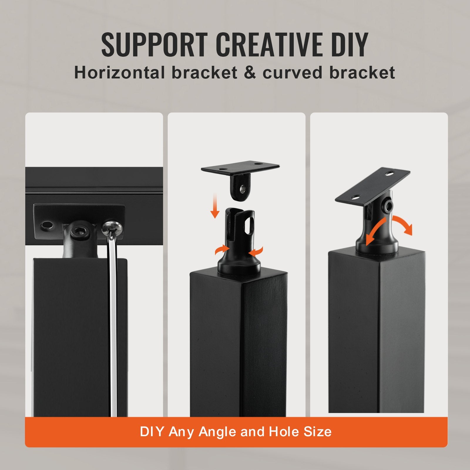 - Einfache Montage und DIY-Lösung: Unser Kabelgeländerpfosten ist mit horizontalen und gebogenen Halterungen ausgestattet, die zu verschiedenen Lochtypen in Geländerpfosten passen und mit quadratischen und runden Geländerformen kompatibel sind. So können Sie jeden beliebigen Handlaufwinkel individuell anpassen.