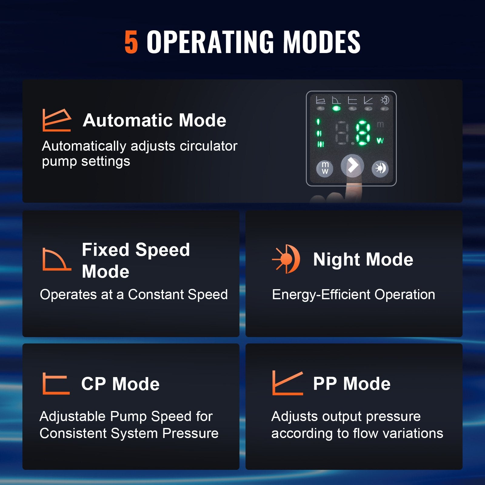 - Intelligente Steuermodi: Ausgestattet mit fünf intelligenten Steuermodi – Automatik, Konstantdrehzahl, Konstantdruck, Proportionaldruck und Nachtmodus – passt diese Umwälzpumpe aus Gusseisen ihren Betrieb automatisch an Ihre Bedürfnisse an. Optimieren Sie die Leistung Ihres Heizsystems, erhöhen Sie den Komfort und reduzieren Sie den Energieverbrauch mit maßgeschneiderten Einstellungen.