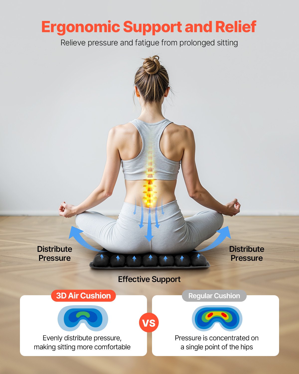 - Stützend und druckentlastend: Das aufblasbare Sitzkissen VEVOR mit 56 unabhängigen Luftzellen bietet hervorragende Unterstützung für Steißbein, Hüfte, Lendenwirbelsäule und Rücken und verteilt den Druck gleichmäßig für mehr Komfort bei längerem Sitzen.