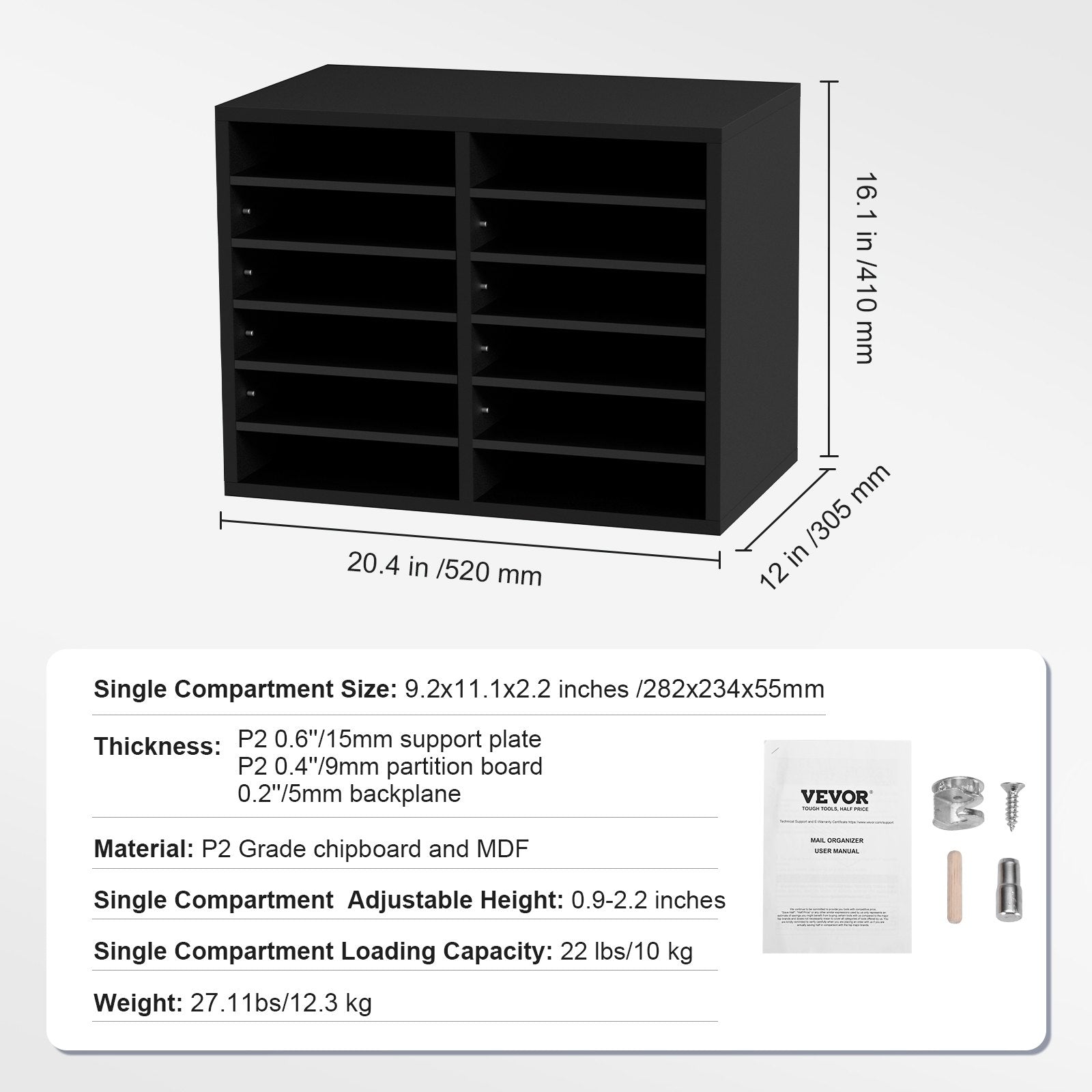 - Maximieren Sie Ihren Platz: Schluss mit unordentlichen Schreibtischen! Der VEVOR Holz-Organizer (51,8 x 30,5 x 40,9 cm) bietet 12 Fächer, übersichtlich angeordnet in 6 Reihen und 2 Spalten. So haben Sie ausreichend Platz zum Aufbewahren und Ordnen von Büchern, Dokumenten, Zeitschriften, Papieren und anderen Materialien. Halten Sie Ihren Arbeitsplatz mühelos ordentlich und aufgeräumt.