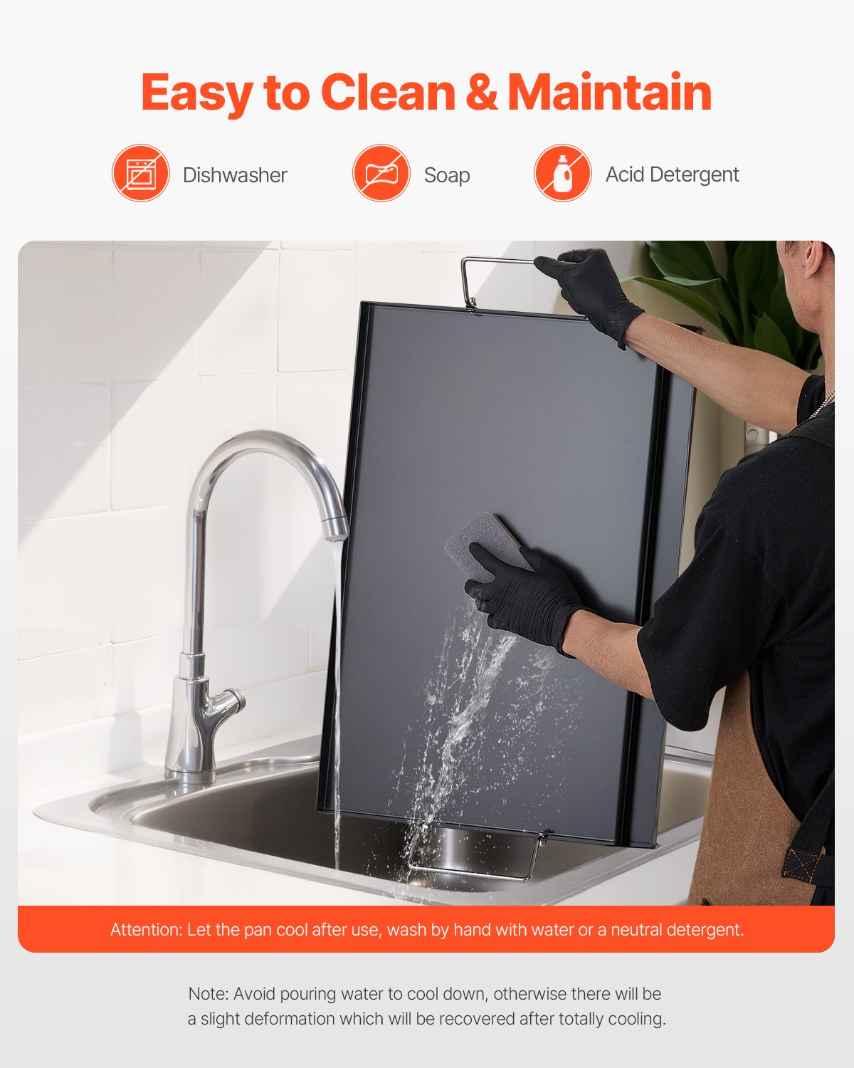 - Hochwertiger Kohlenstoffstahl: Diese Grillplatte für Gasgrills ist aus robustem Kohlenstoffstahl gefertigt und hält Temperaturen bis zu 260 °C stand, sodass Sie bei hohen Temperaturen grillen können. Die X-förmige Verstärkung an der Unterseite verhindert Verformungen.