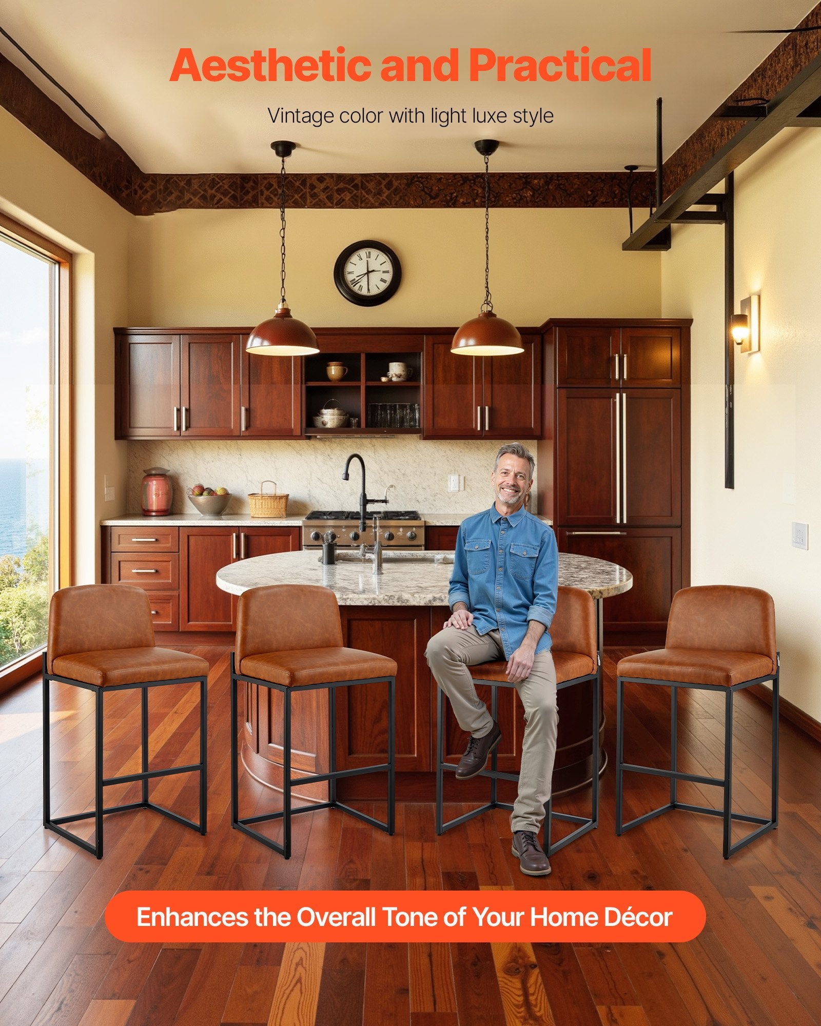 - Leichter Luxus und Vielseitigkeit: Das vintagebraune PU-Leder harmoniert perfekt mit der eleganten, geschwungenen Rückenlehne und passt sowohl in private als auch in gewerbliche Räume. Die Standard-Sitzhöhe ist für gängige Bartheken und Kücheninseln geeignet.