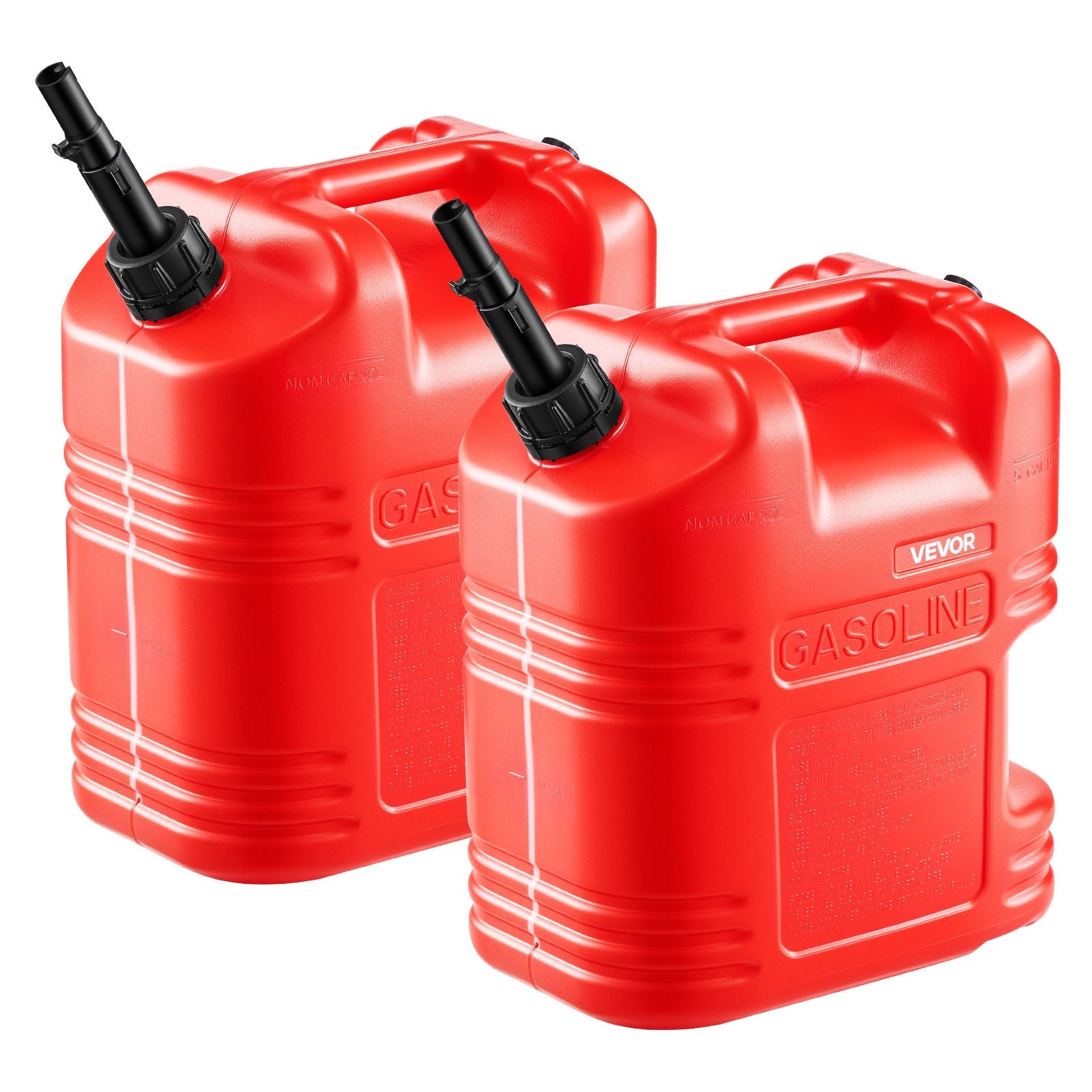 Kraftstoffkanister, 19 l, Benzintank mit Ausgießer und Skala, max. Durchflussrate 15 l/min, sicher und auslaufsicher, tragbarer flacher Flüssigkeitsbehälter für die meisten Autos, Motorräder, ATVs und UTVs, rot, 2er-Pack