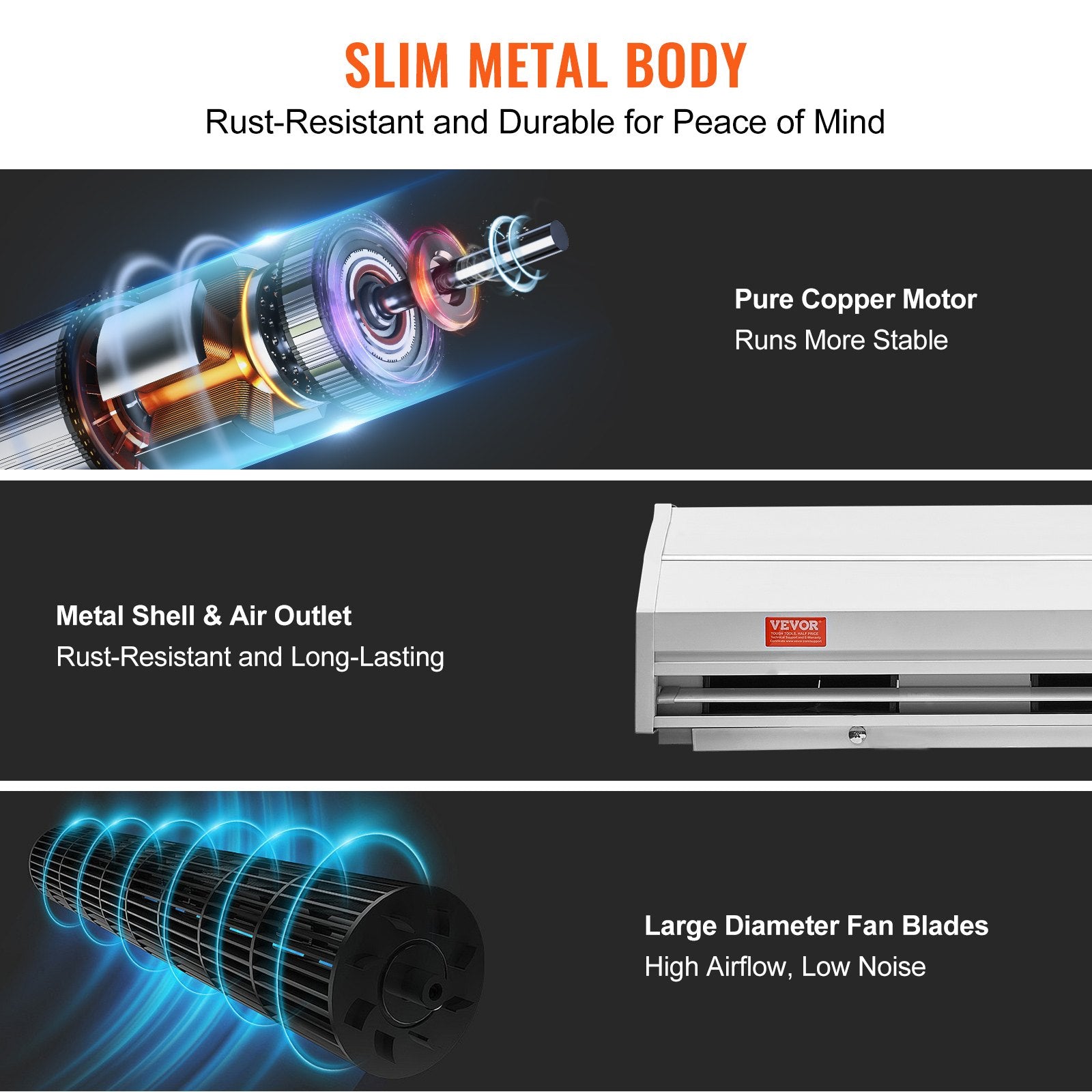 - Korrosionsbeständigkeit und Rostschutz: Das schlanke Metallgehäuse ist äußerst korrosions- und rostbeständig. Dank des korrosionsbeständigen Metallgehäuses und Luftauslasses arbeitet das Lüfterrad mit großem Durchmesser leise und effizient. Ausgestattet mit einem Motor aus reinem Kupfer für zuverlässige und stabile Leistung.