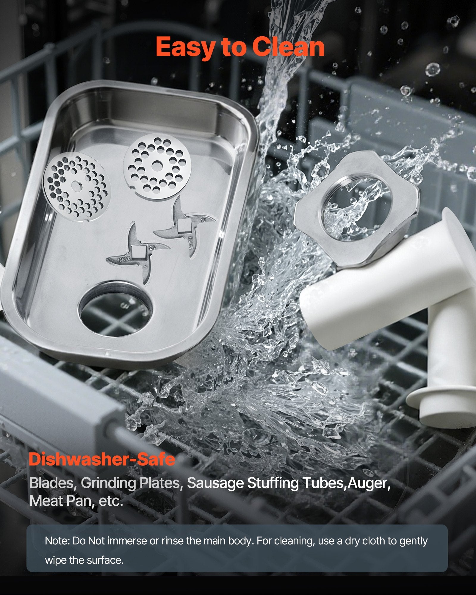 - Robuste Konstruktion: Der elektrische Fleischwolf besteht aus Kohlenstoffstahl und Edelstahl und verfügt über scharfe SUS420-Klingen, die langlebig sind und sich zum Zerkleinern von Hühnerknorpel, gefrorenem Fleisch und vielem mehr eignen.