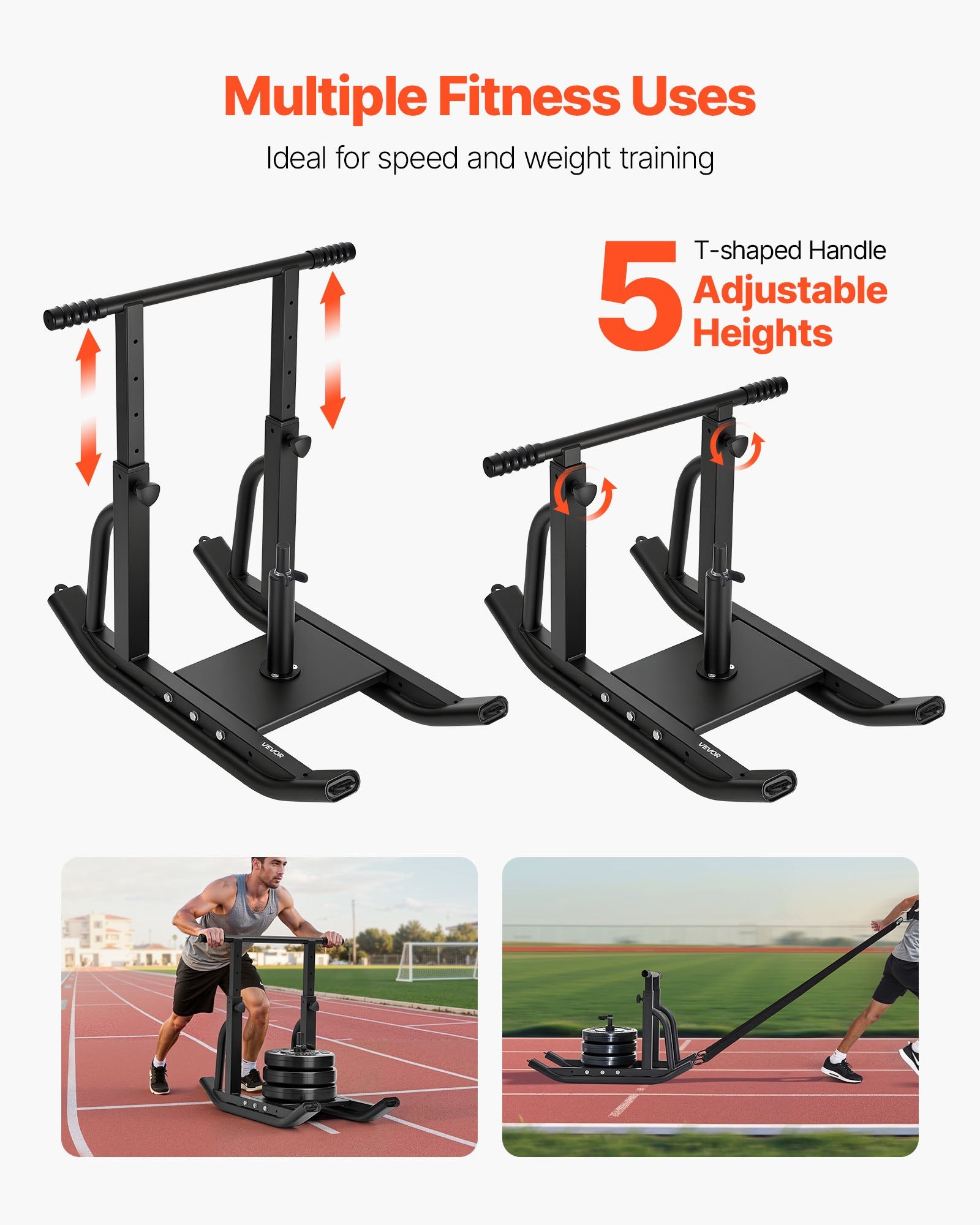 Gewichtsschlitten, Stahl-Kraftschlitten, Fitness-Trainingsschlitten zur Steigerung der Geschwindigkeit beim sportlichen Training, Trainingsgerät mit höhenverstellbarem Griff, kompatibel mit 25/51-mm-Gewichtsscheiben, Schwarz