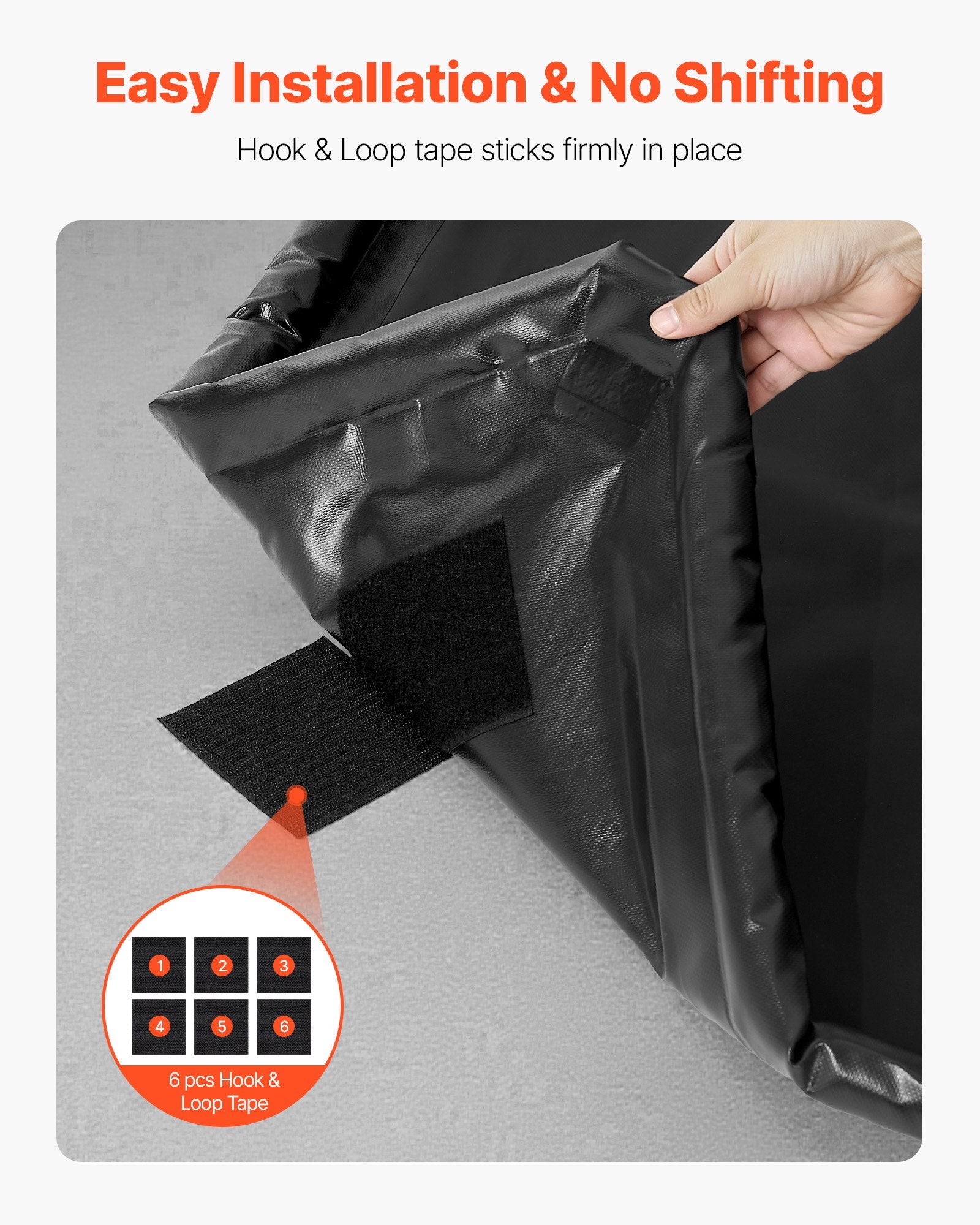 - Einfache Installation: Die Wasserauffangmatte verfügt über ein Klettverschlusssystem mit sechs 10 x 10 cm großen Stücken, die sie fest am Boden fixieren. Sie lässt sich von einer Person ohne Werkzeug oder fremde Hilfe einfach aufstellen oder versetzen.