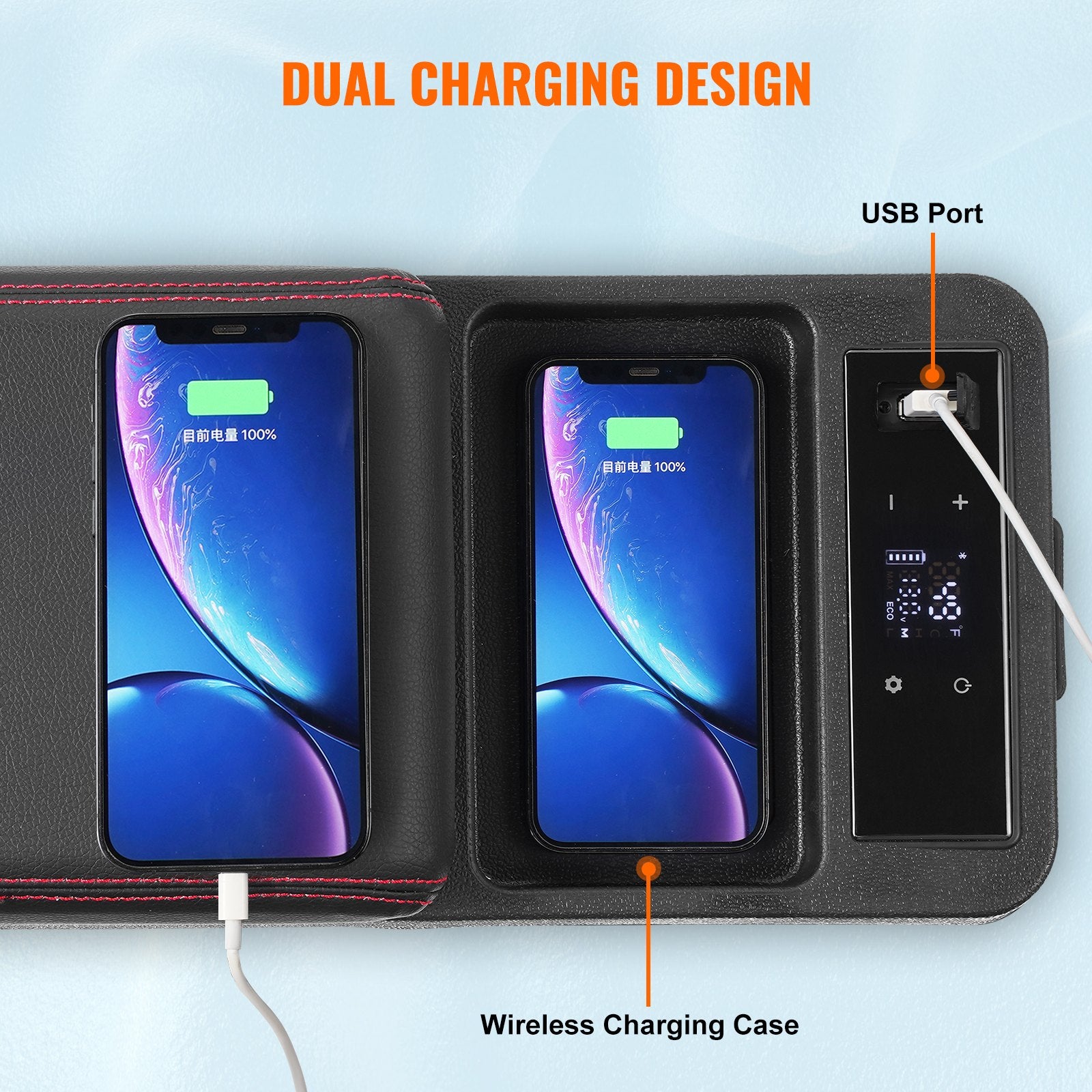 - Autokühlschrank mit Armlehne: Der Autokühlschrank verfügt über eine doppelte Ladefunktion, einen USB-Anschluss und die Möglichkeit zum kabellosen Laden von Mobiltelefonen. Der Griff aus Leder zeugt von hoher Qualität und sorgt für mehr Komfort während der Fahrt.