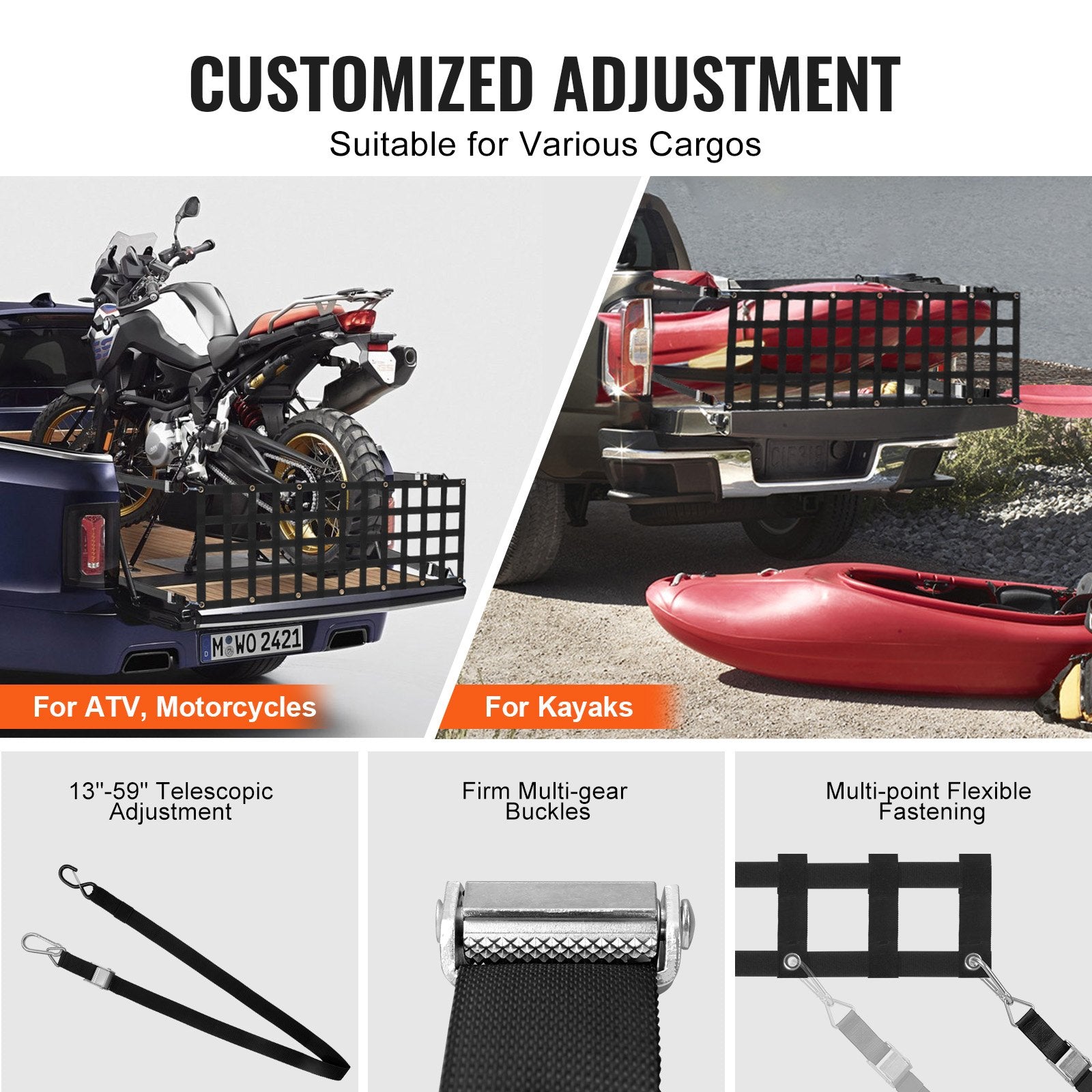 Ladeflächennetz, 152 x 46 cm, robustes Gepäcknetz für Pickups mit 4 verstellbaren Teleskopgurten, ausziehbar und langlebig, flexibel verstellbar, geeignet für Pickups, Anhänger, Lkw, Jeeps und SUVs