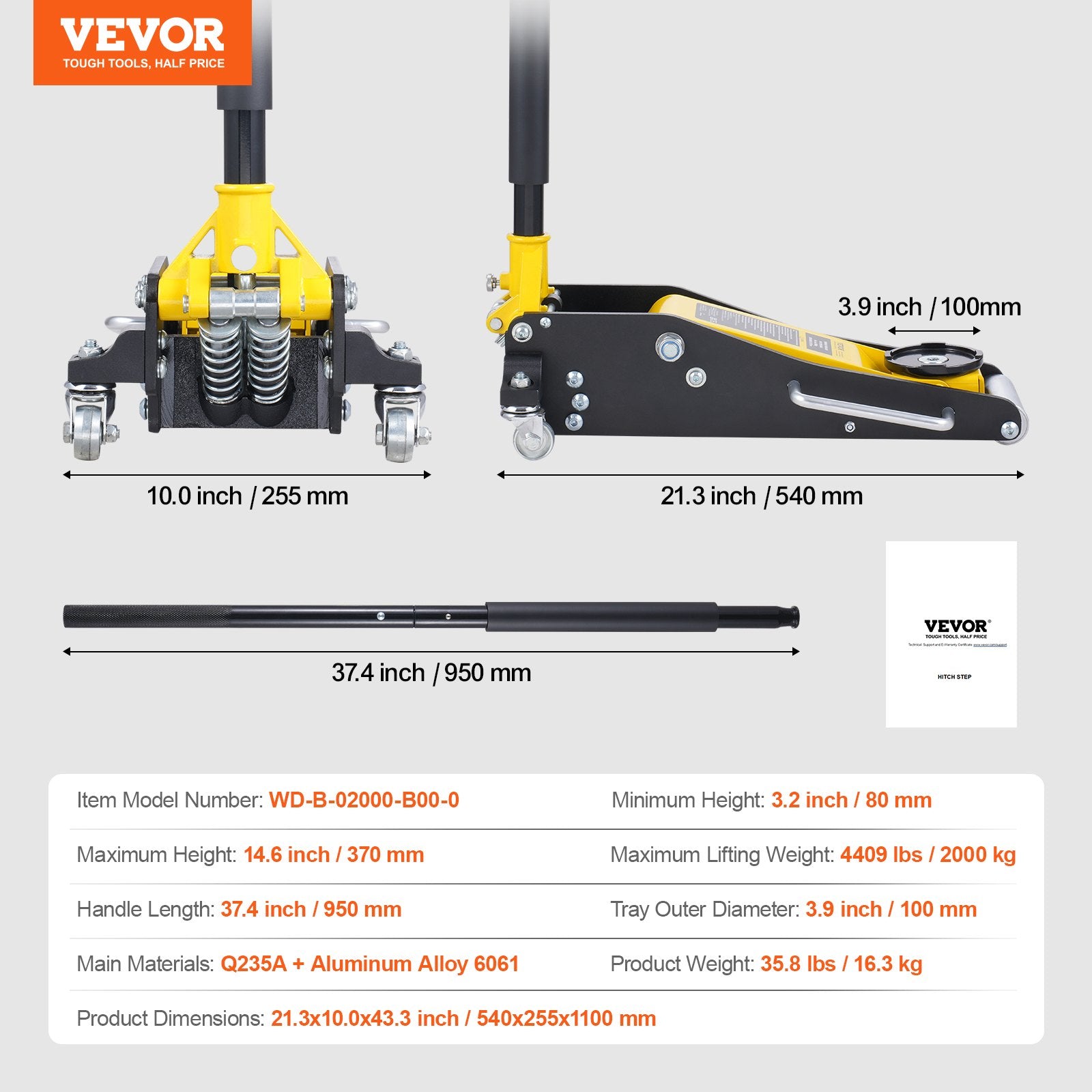 - Robuste Aluminium-Eisen-Konstruktion: Dank des geschweißten Rahmens bleibt der kleine Wagenheber während des Gebrauchs stabil. Er vereint die Stabilität von Eisen mit dem geringen Gewicht von Aluminium und reduziert so Wackeln, Verformung und Korrosion. Dadurch ist er leicht zu transportieren und zu bedienen. Der Griff aus Kohlenstoffstahl ist verstärkt und verdickt, um ein Brechen beim Anheben zu verhindern.