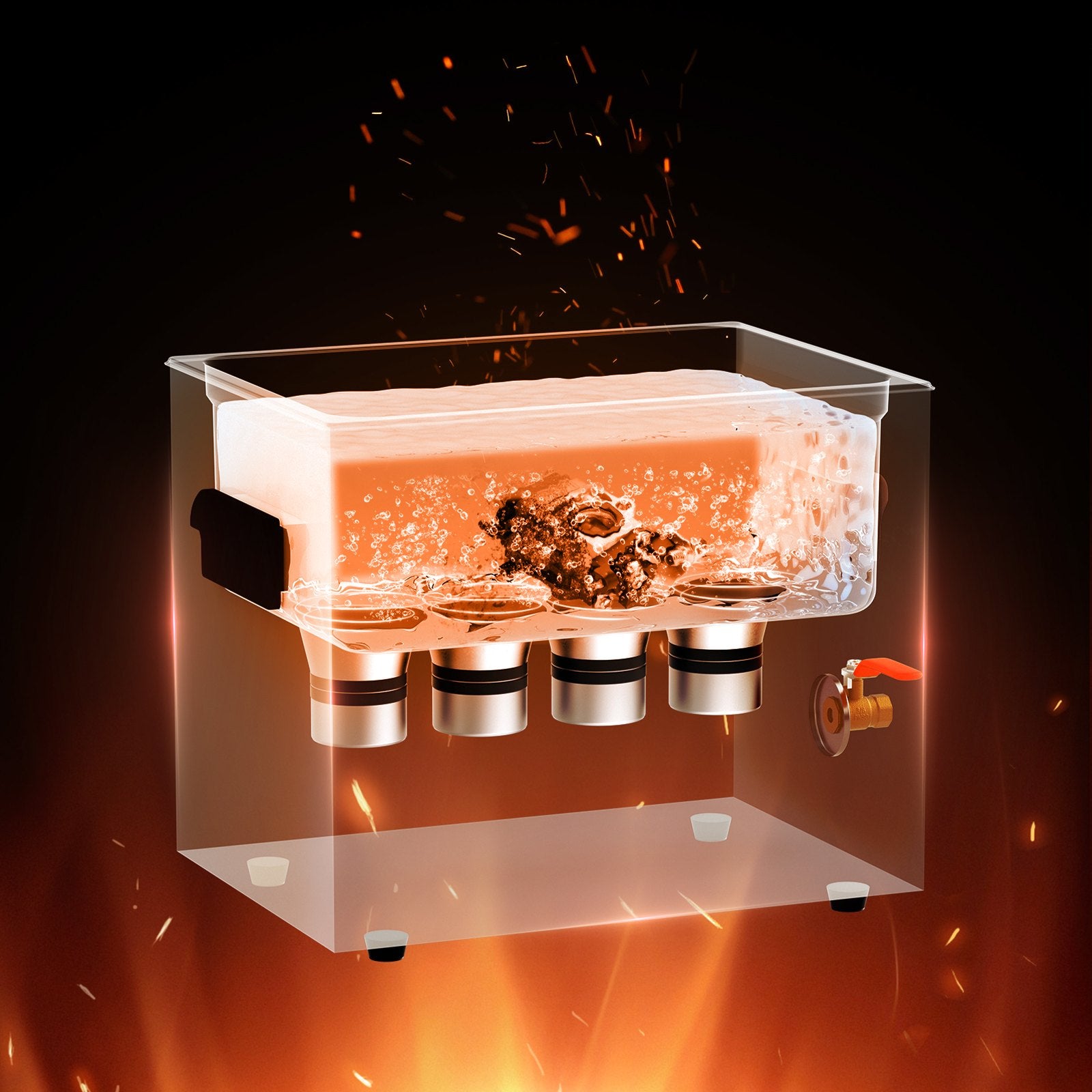- Fortschrittliche Wandlertechnologie: Der effiziente Wandler löst in Kombination mit Ultraschallwellen selbst hartnäckiges Fett im Handumdrehen. Dank der 360°-Reinigung von Präzisionsinstrumenten werden hartnäckiger Schmutz und Öl mühelos entfernt, ohne die Instrumente zu beschädigen. Ob für den täglichen Gebrauch oder professionelle Reinigungsanwendungen – Sie können dieses Gerät bedenkenlos einsetzen.