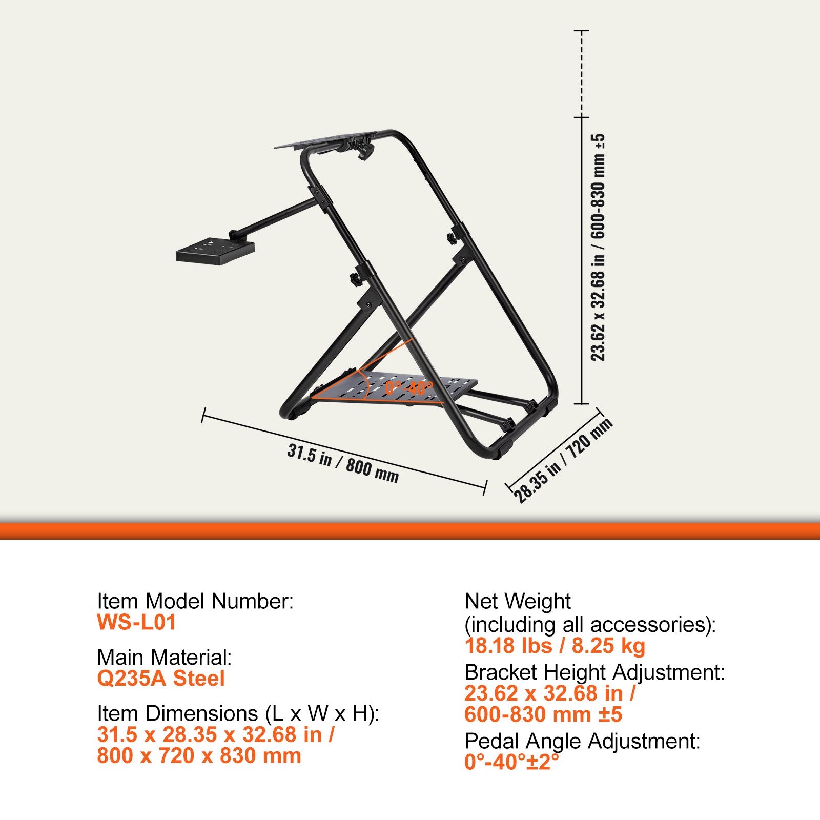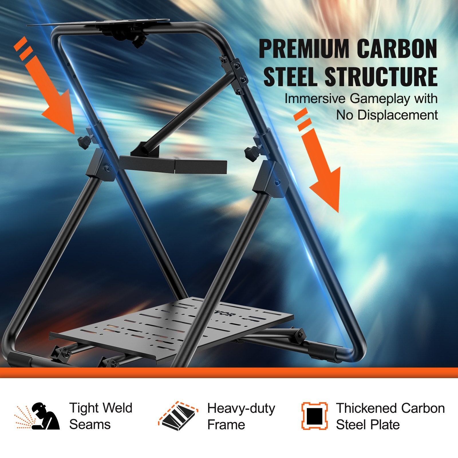 Zusammenklappbarer Rennlenkradständer, höhenverstellbare Universalbasis, kompatibel mit Logitech- und Thrustmaster-Rennlenkrädern und -Pedalen, robuster Rahmen, Standard-GT/Formula-Sitz, tragbar