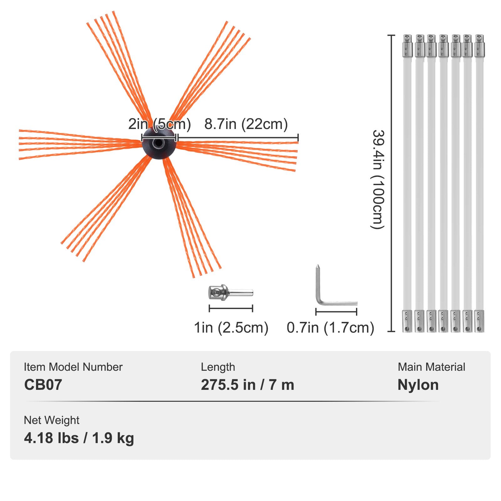 - Für verschiedene Anwendungsbereiche geeignet: Das Rohrreinigungsset ist in verschiedenen Kombinationen erhältlich, um unterschiedliche Längen abzudecken und so auch schwer zugängliche Stellen zu reinigen. Verwenden Sie bei Bedarf zusätzliche flexible Stangen, um die benötigte Entfernung zu erreichen.
