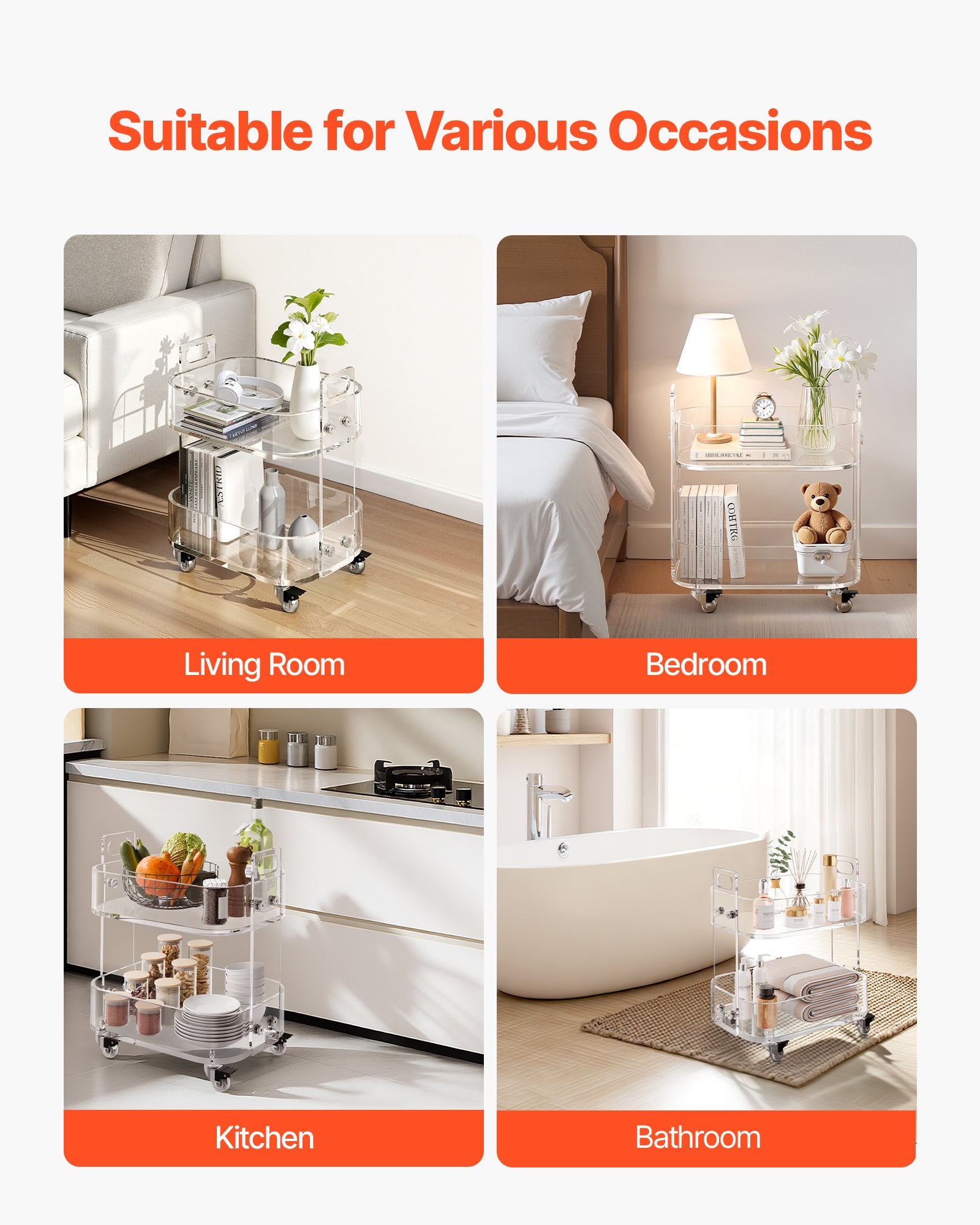 Acryltisch mit Rollen, 2-stöckiger mobiler Beistelltisch, moderner rollbarer Acryl-Schreibtisch mit Stauraum, transparenter Nachttisch/Beistelltisch, für Wohnzimmer, Schlafzimmer, Bar, Büro, 30,5 x 41,6 x 48 cm (transparent)