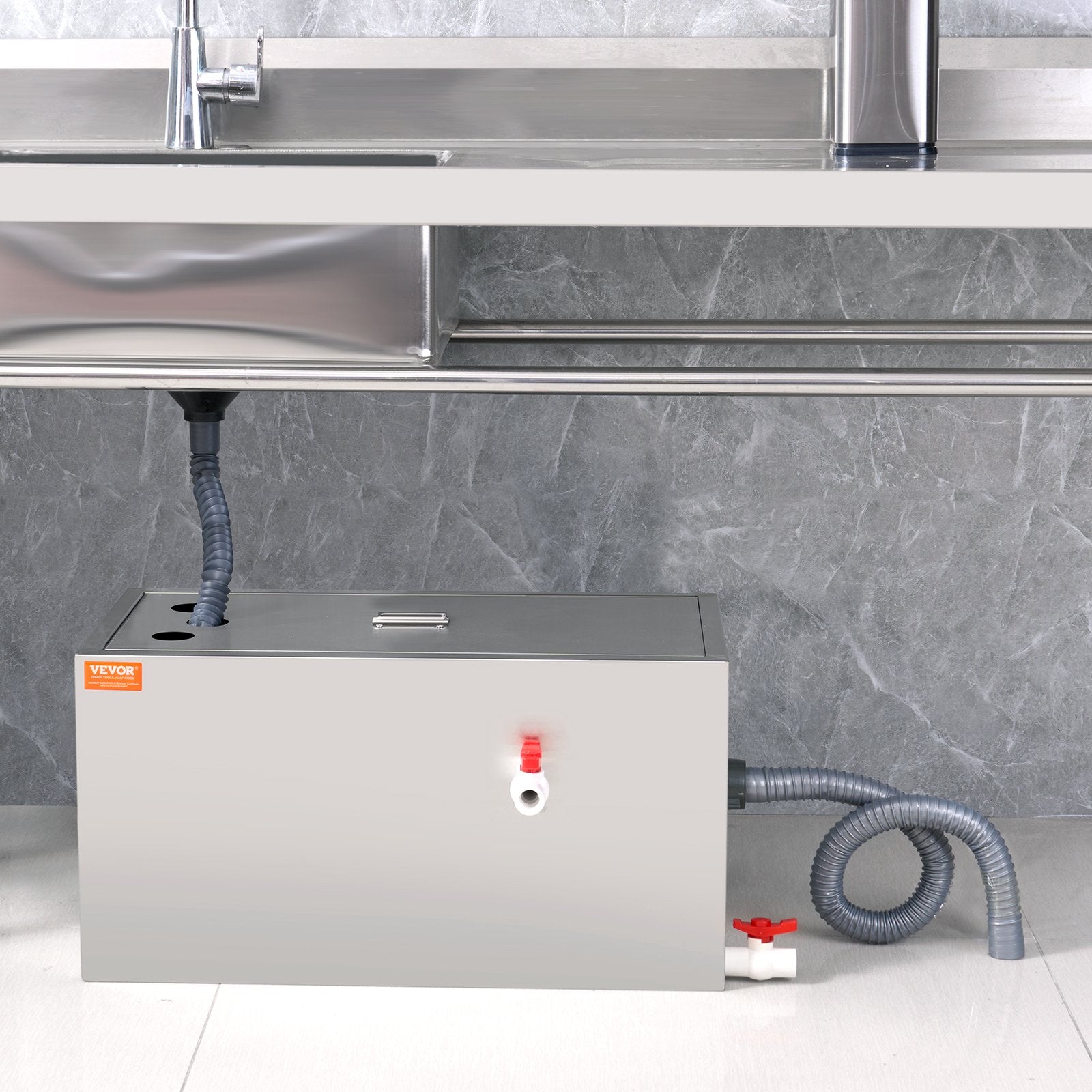 Gewerblicher Fettabscheider, 11,3 kg Fettabscheider, Fettabscheider mit oberem Zulauf, Untertisch-Fettabscheider aus Edelstahl, 6,4 GPM Abwasser-Öl-Wasser-Abscheider, für Restaurantkantine und private Küche