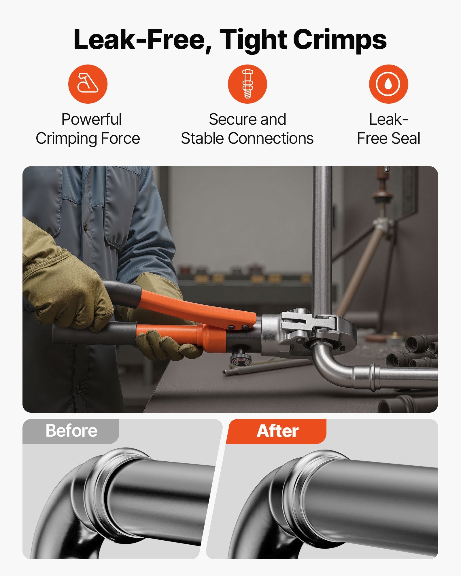- Breites Anwendungsspektrum: Ob für die Rohrinstallation und -reparatur in der Hausinstallation, in HLK-Systemen oder bei industriellen Rohrleitungsprojekten – unser hydraulisch betriebenes Rohrpresswerkzeug sorgt für stabile und sichere Rohrverbindungen und gewährleistet so eine effiziente und zuverlässige Leistung.
