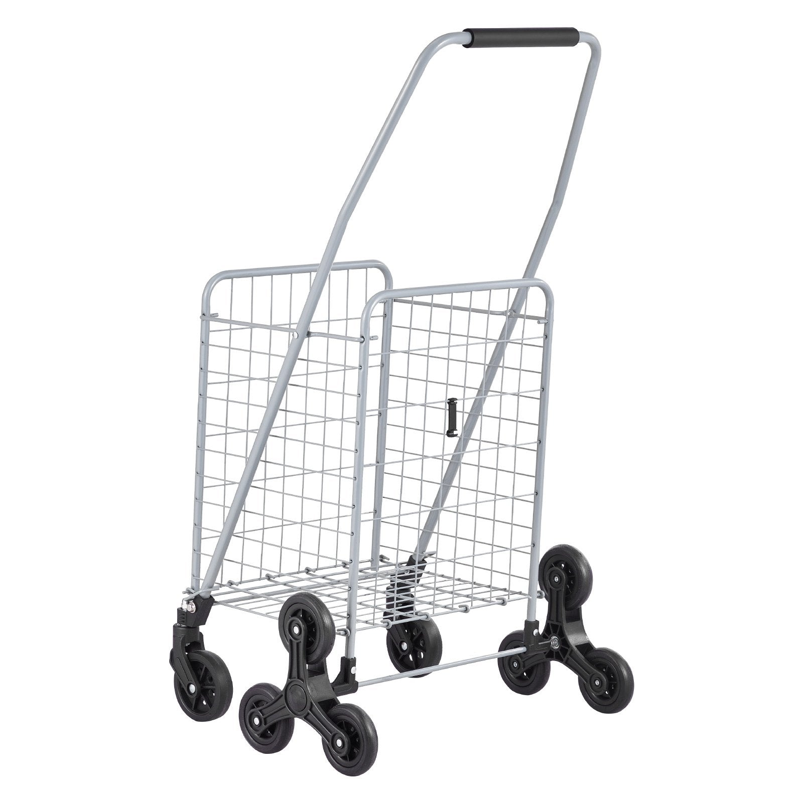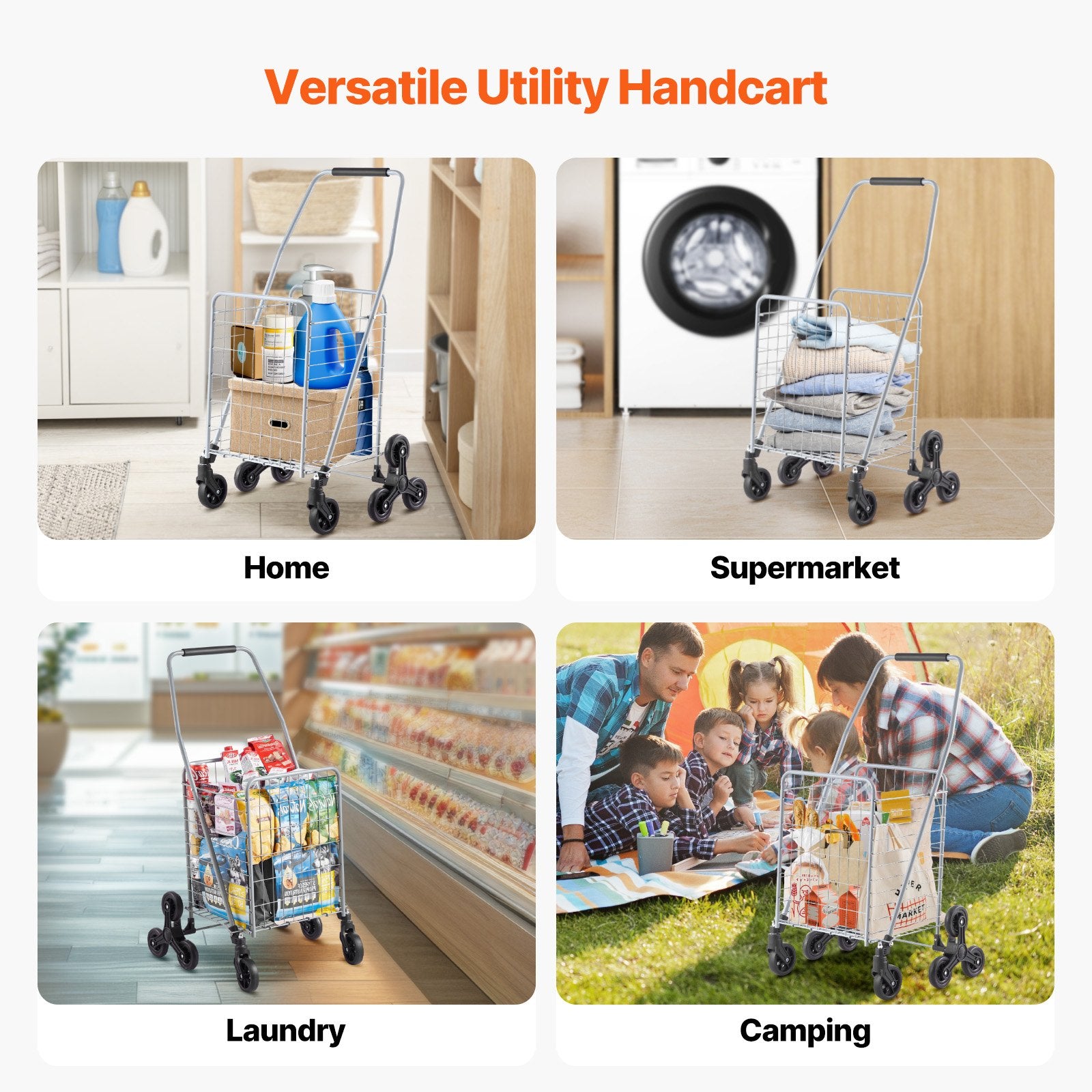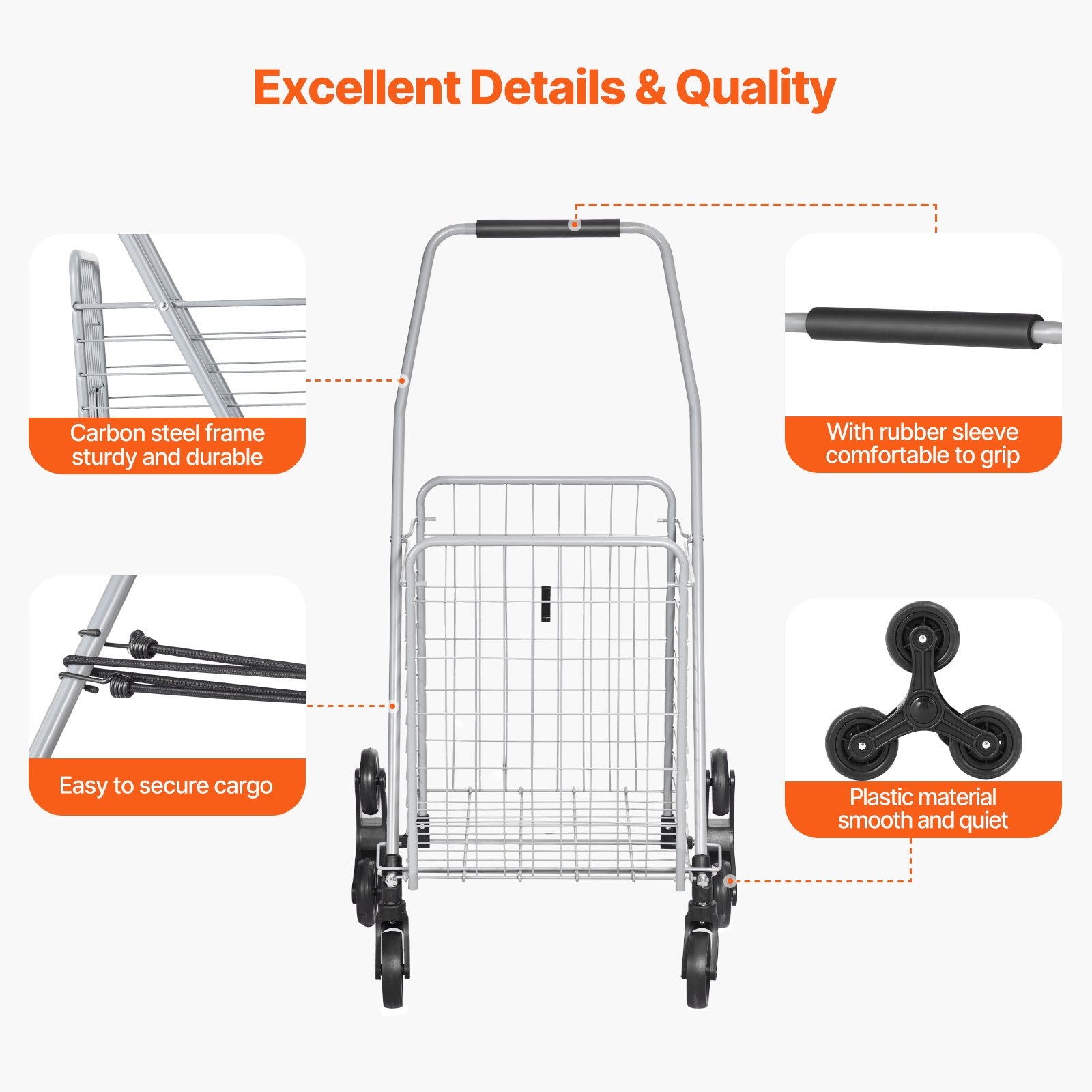 Einkaufswagen, 45 l, Treppensteiger-Einkaufswagen mit 360°-Drehrollen, Treppensteiger-Transportwagen mit Dreiradantrieb, faltbar, zusammenklappbar und leicht – ideal für Wäschetransport und Reisen, Silber
