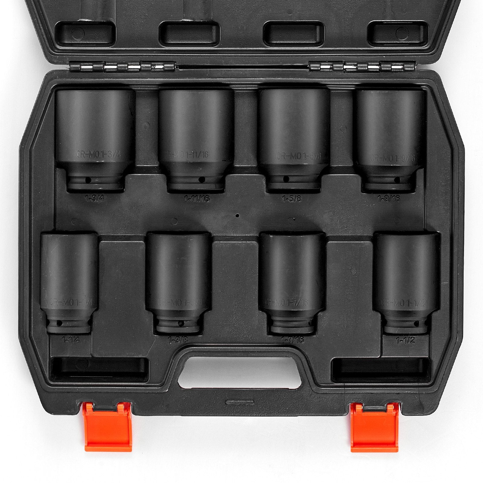 Achsmuttern-Schlagschrauber-Steckschlüsselsatz, 1/2"-Antrieb, tief, 12-kant, 8-teilig, metrisch, Spindelmuttern-Steckschlüsselsatz, wärmebehandelter CR-MO-Steckschlüsselsatz mit Aufbewahrungskoffer, Autoreparatur, Entfernen oder Anbringen von Achsmuttern