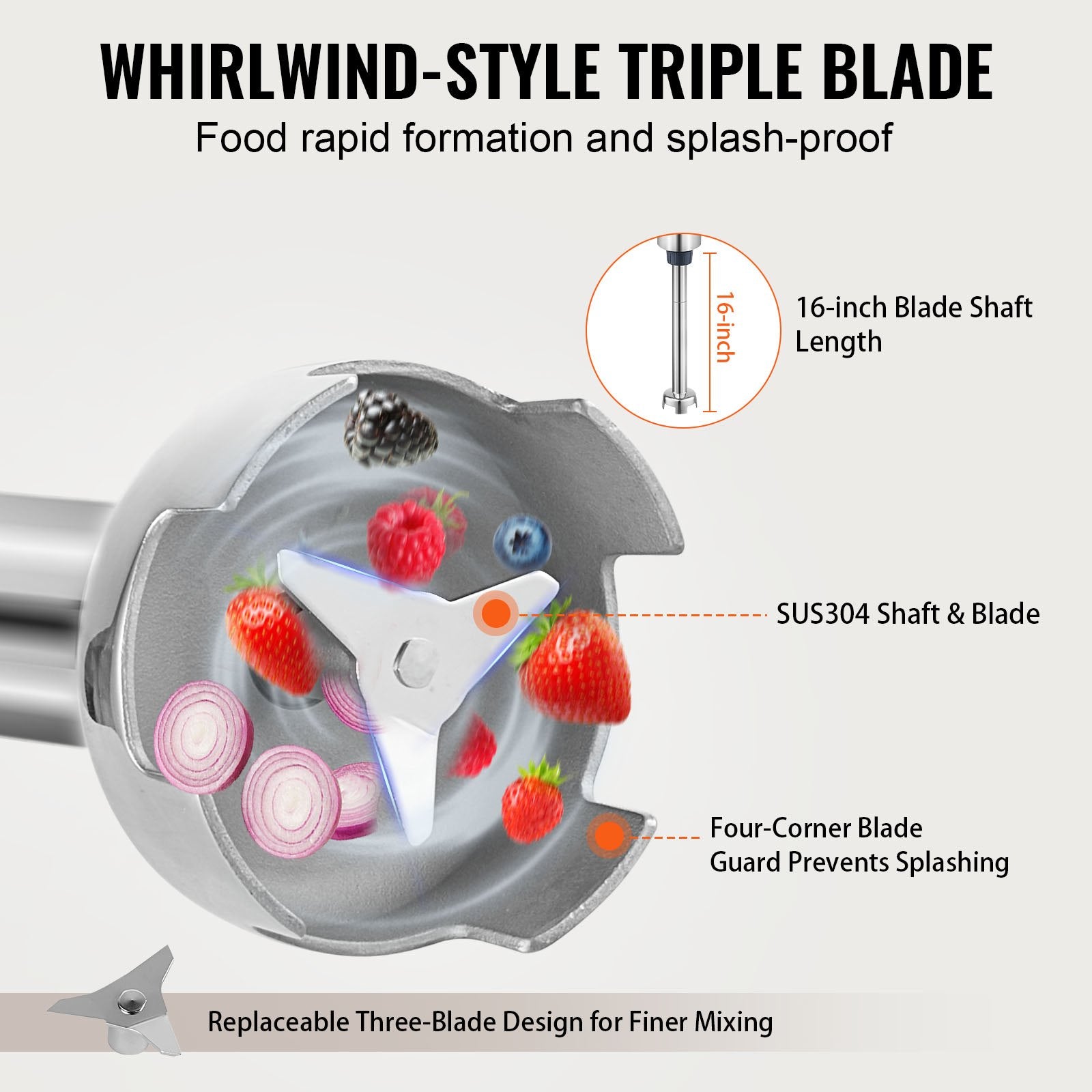 Professioneller Stabmixer, 500 W, Hochleistungs-Handmixer, 40 cm (16 Zoll) langer, stufenlos einstellbarer Geschwindigkeitsregler mit Edelstahlklinge, vielseitiger tragbarer Mixer für Suppen, Soßen, Kartoffelpüree und Sahne.