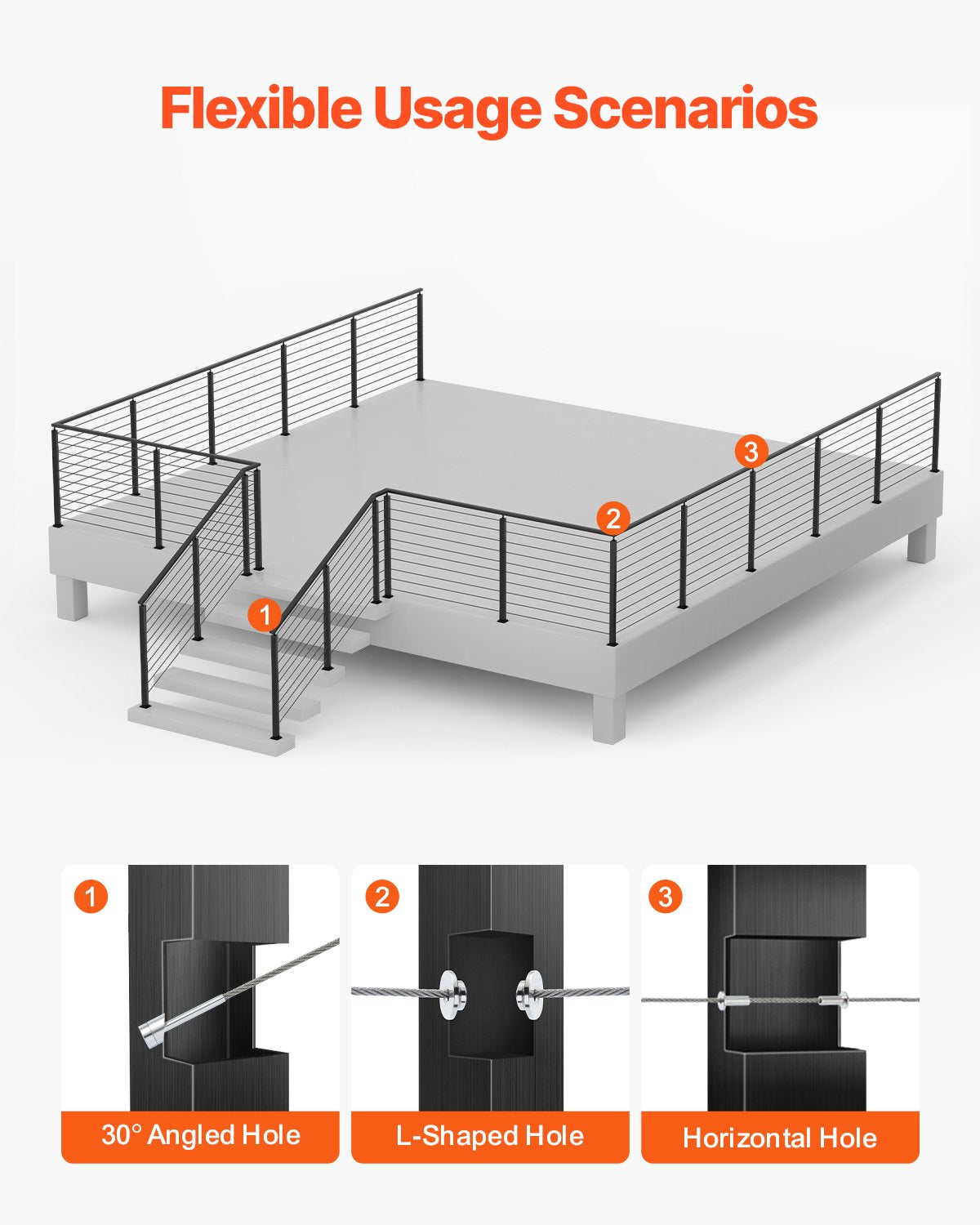 - Multi-Scene Protection: Our cable rail post is suitable for both indoor and outdoor protection, including decks, stairs, porches, fences, patios, balconies, gardens, residential buildings, commercial offices, hotels, garages, and more
