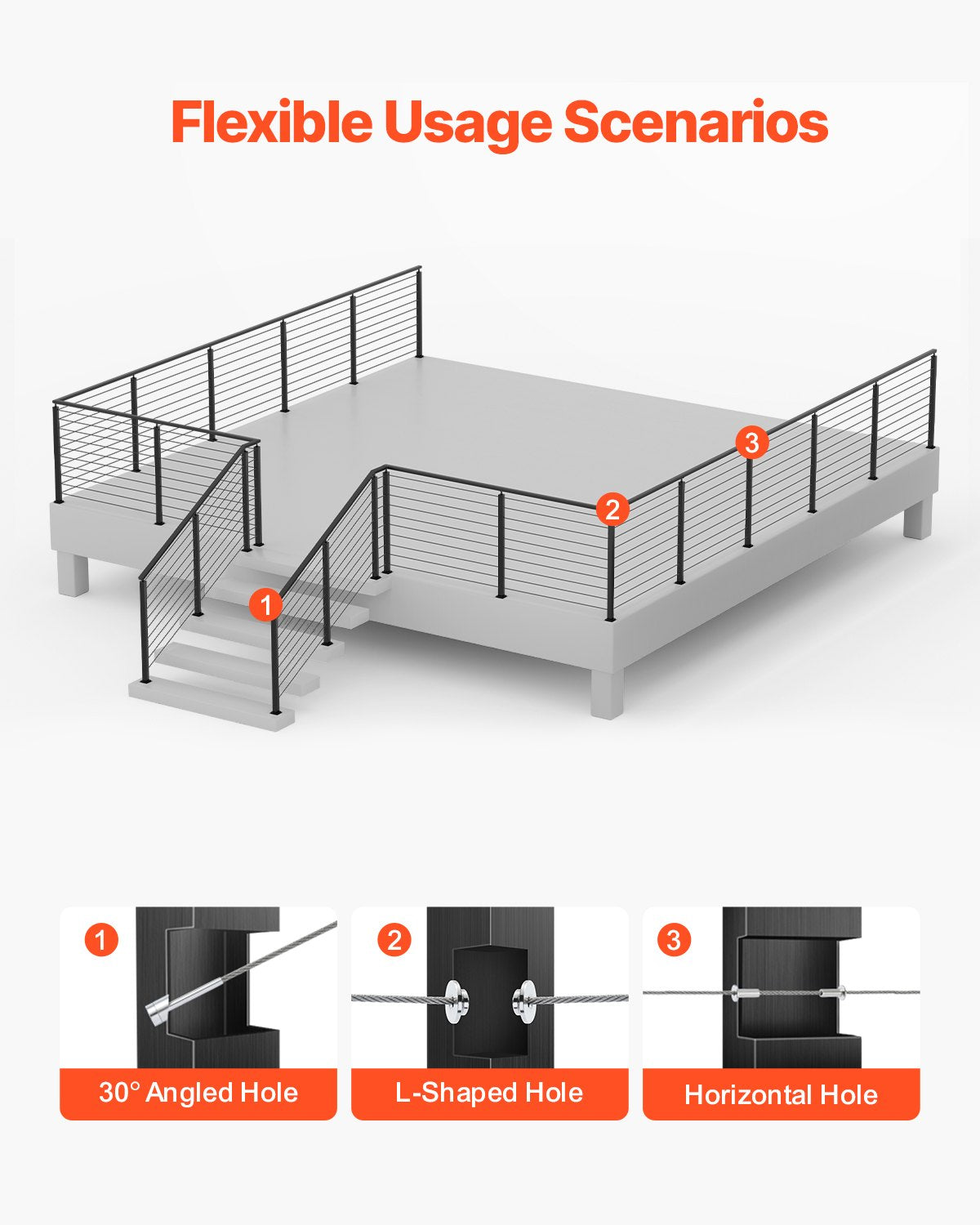 - Multi-Scene Protection: Our cable rail post is suitable for both indoor and outdoor protection, including decks, stairs, porches, fences, patios, balconies, gardens, residential buildings, commercial offices, hotels, garages, and more