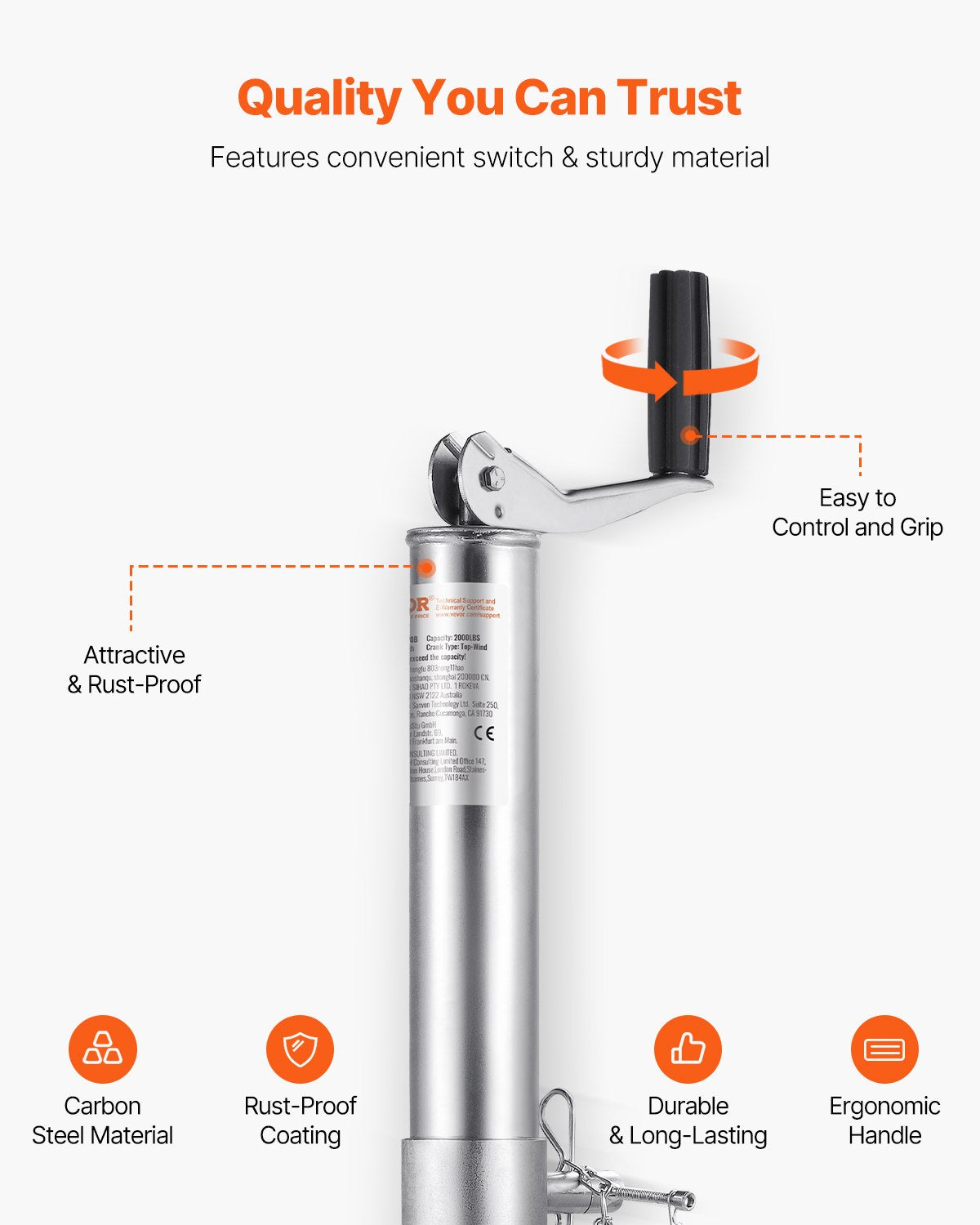 - Reliable and Durable: This trailer tongue jack is made of tough carbon steel with a rust-resistant, galvanized finish. It's ready for anything, standing up to all kinds of environments without giving in to rust.