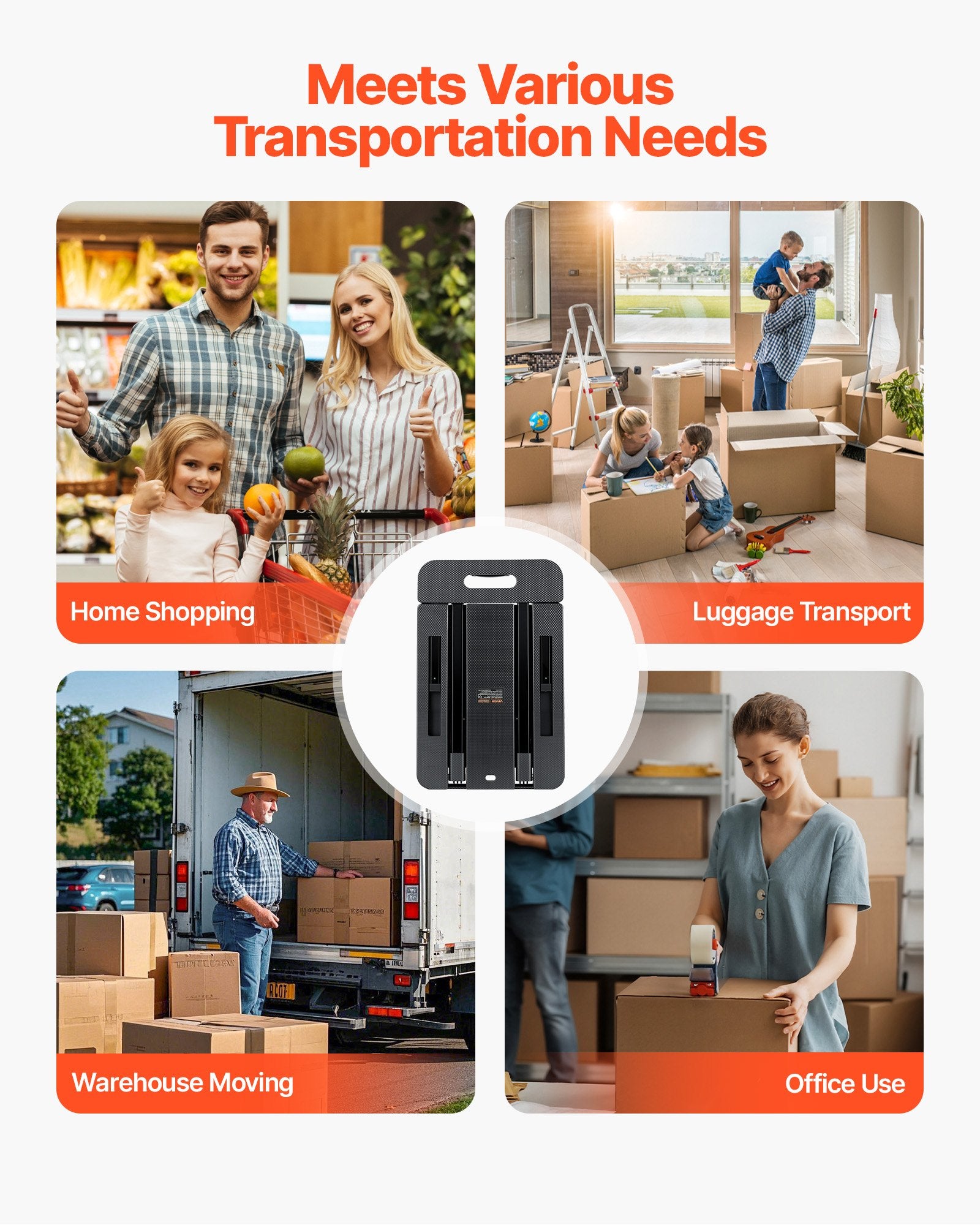 - Heavy-duty Load Capacity: With 6 durable, silent wheels (4 ball-bearing casters and 2 fixed wheels), this collapsible hand cart supports up to 500 lbs. Its sturdy steel handle and reinforced plastic base offer unmatched stability. Tip: Place cargo in the center for smooth transport