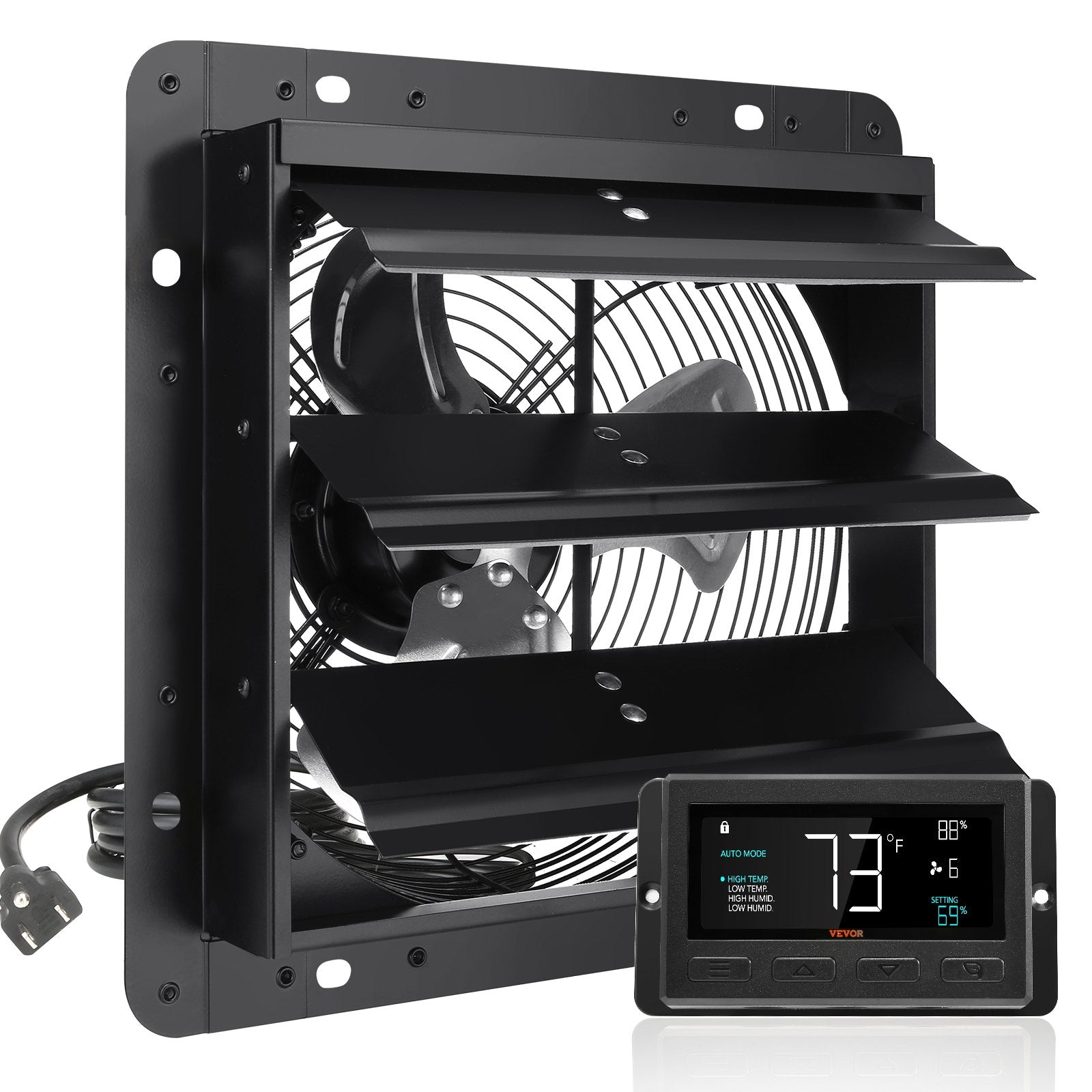 Shutter Exhaust Fan, 254mm with Temperature Humidity Controller, EC-motor, 843 CFM, Variable Speed Adjustable Wall Mount Attic Fan, Ventilation and Cooling for Greenhouses, Garages, Sheds