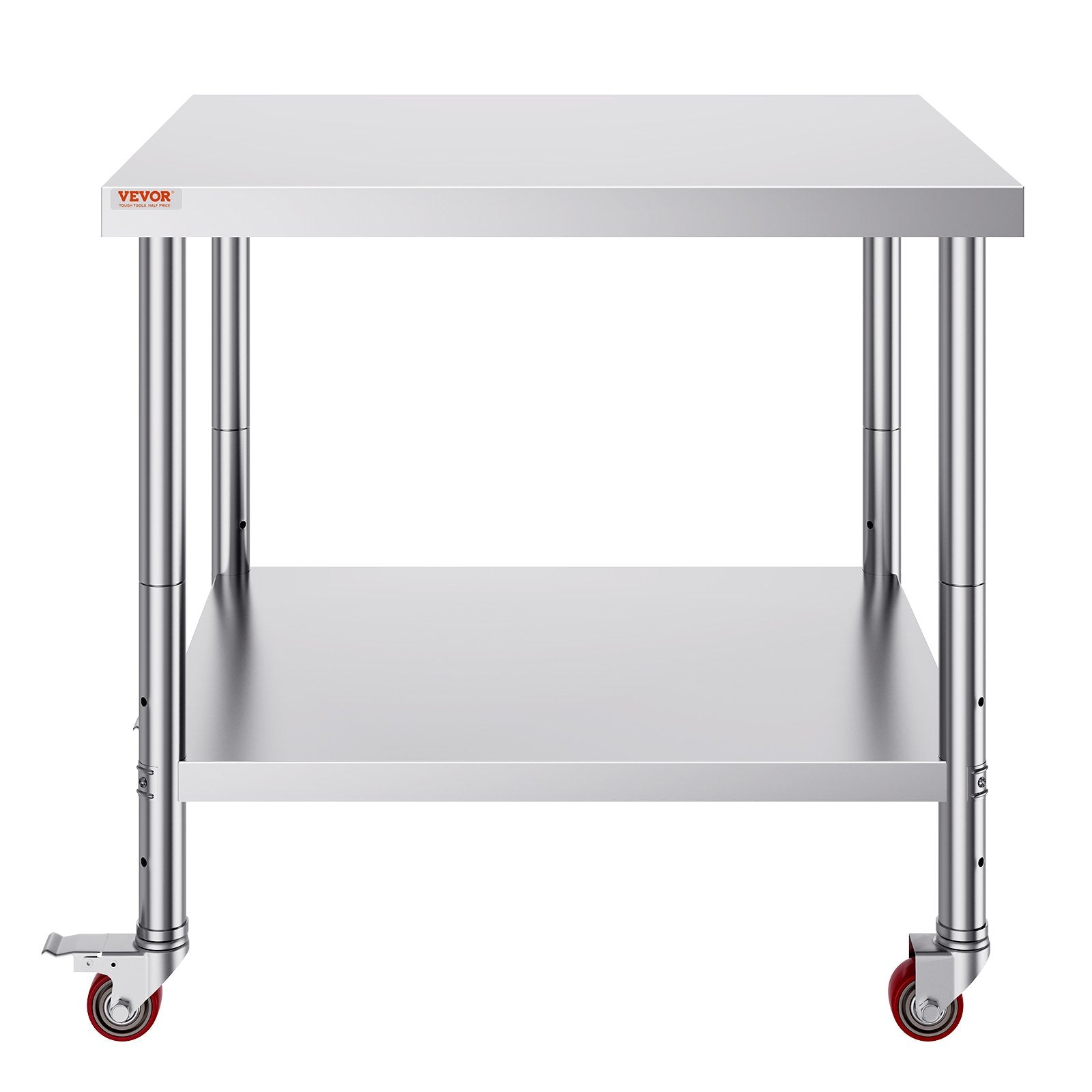 Stainless Steel Catering Work Table 30x36 Inch Commercial Kitchen Table with 4 Wheels Commercial Food Prep Workbench With Flexible Adjustment Shelf for Kitchen Prep Table