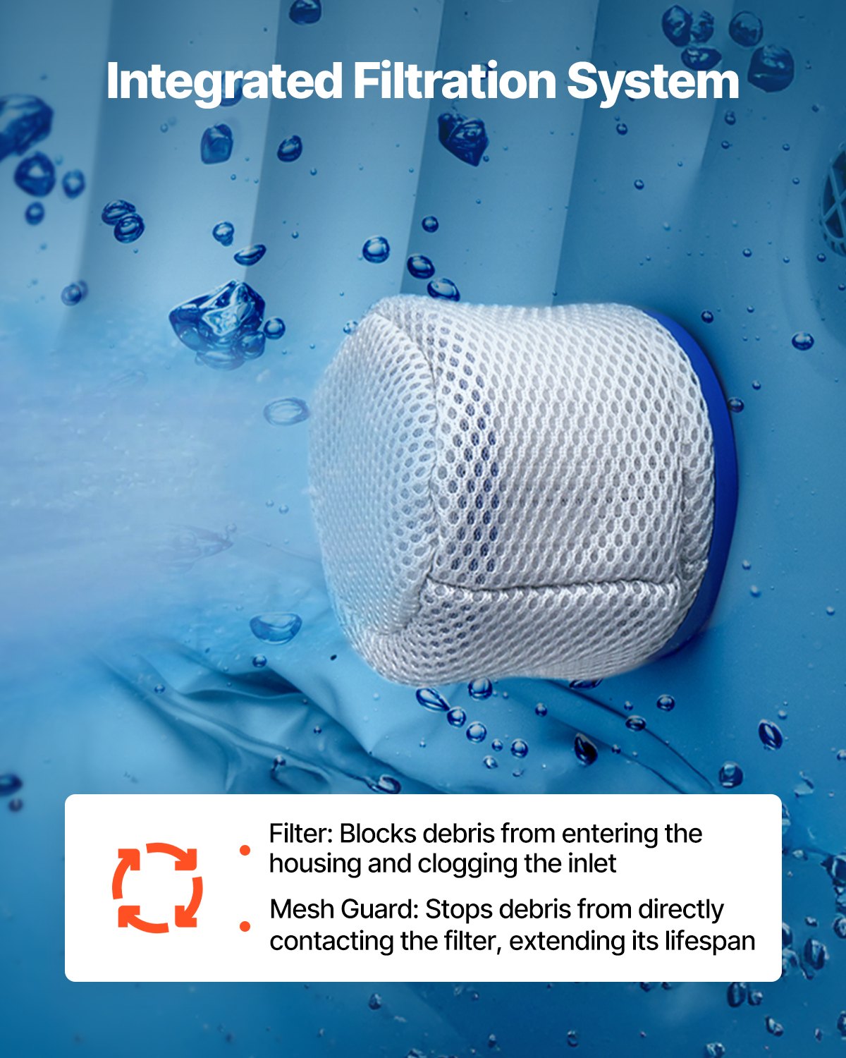 - Integrated Filtration System: The portable hot tub features an integrated filtration system that effectively clears impurities, dirt, skin flakes, cosmetic residue, and other contaminants from the water, ensuring clear and clean water while avoiding debris from entering the base, enhancing durability