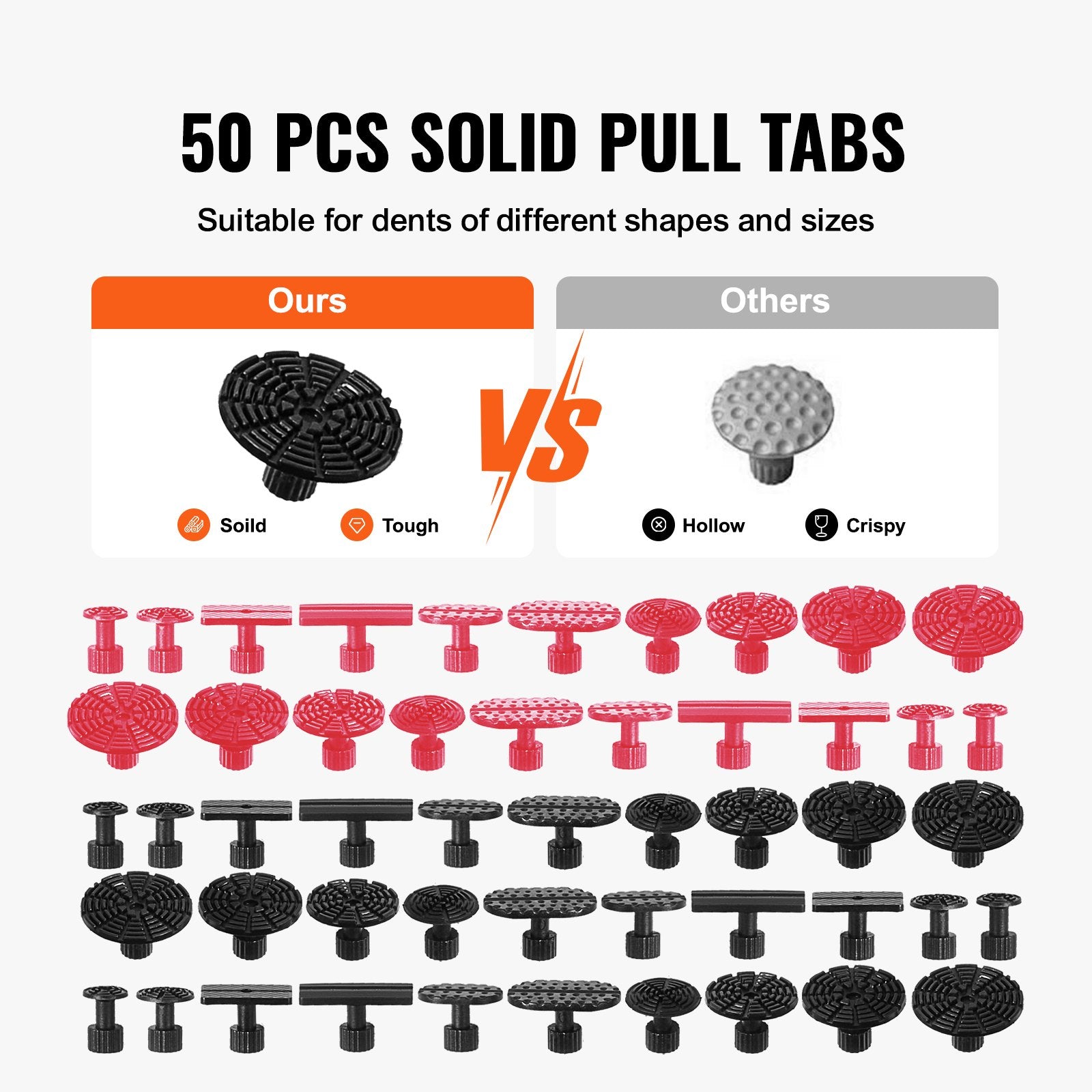 - Why Choose Us: Our solid tabs are more durable than most hollow tabs on the market. And 50 pcs tabs of different sizes and shapes are great for repairing various dents. The glue sticks have a strong viscosity, ensuring that the tab can stick firmly to the dent. With our hot glue gun, you can quickly melt the glue stick and start repair work.