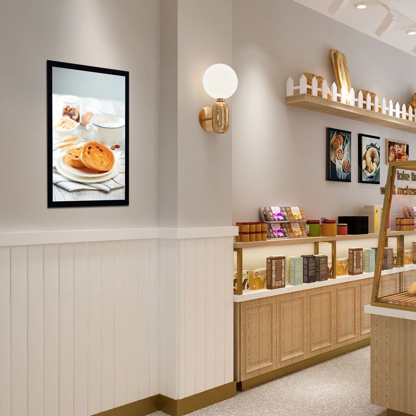 - Versatile Display: From promotional graphics in retail stores to captivating images in movie theaters, elevators, dessert shops and shopping malls, the backlit picture frame effortlessly adapts to any location, providing a captivating experience for you and your audience.