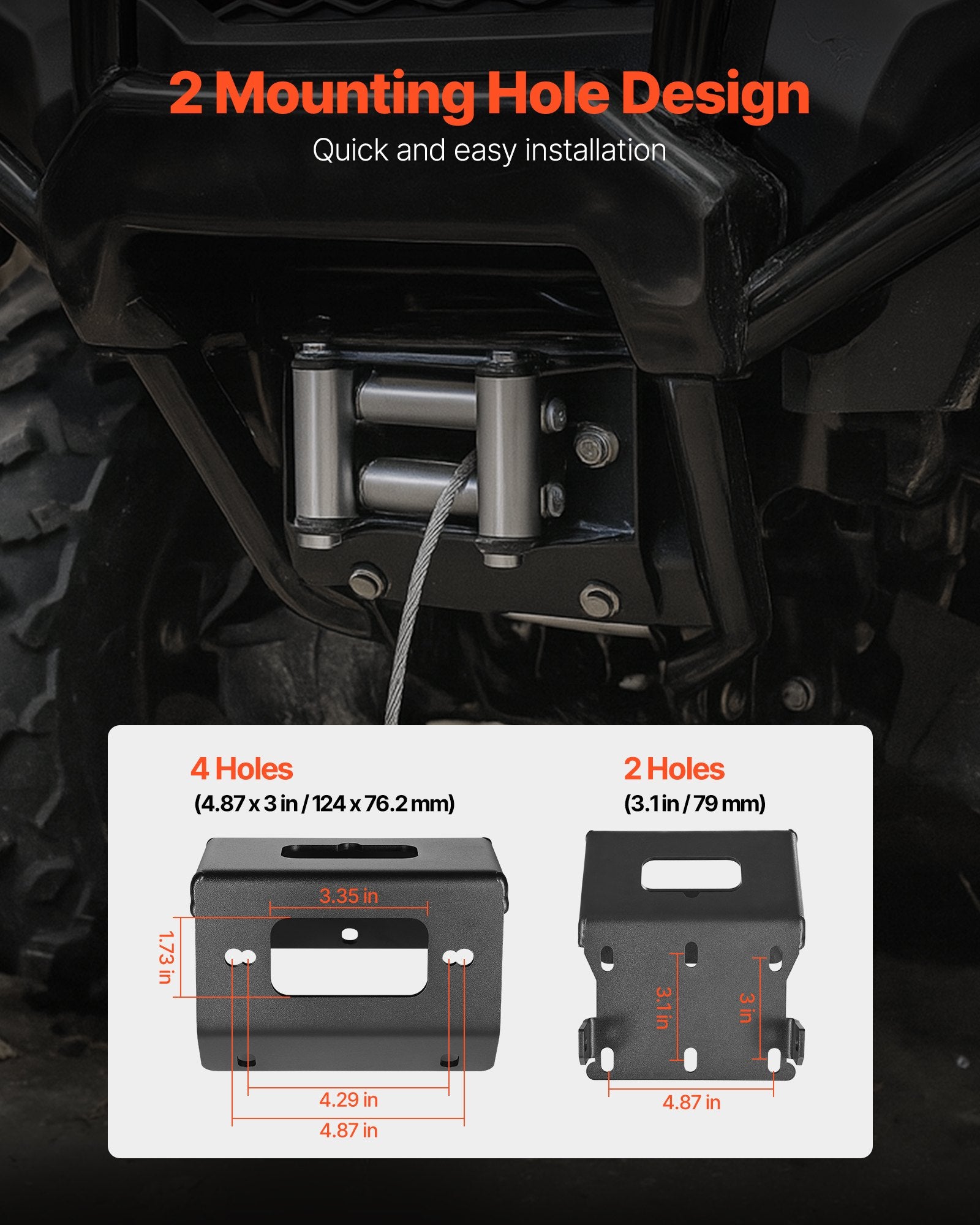 - 2 Winch Mounting Holes: The trailer winch mount supports 4-hole standard (4.9 x 3.0 inches) and 2-hole standard (3.1 inches) hole configurations. The versatile design fits most standard winches, ensuring broad compatibility for different user needs