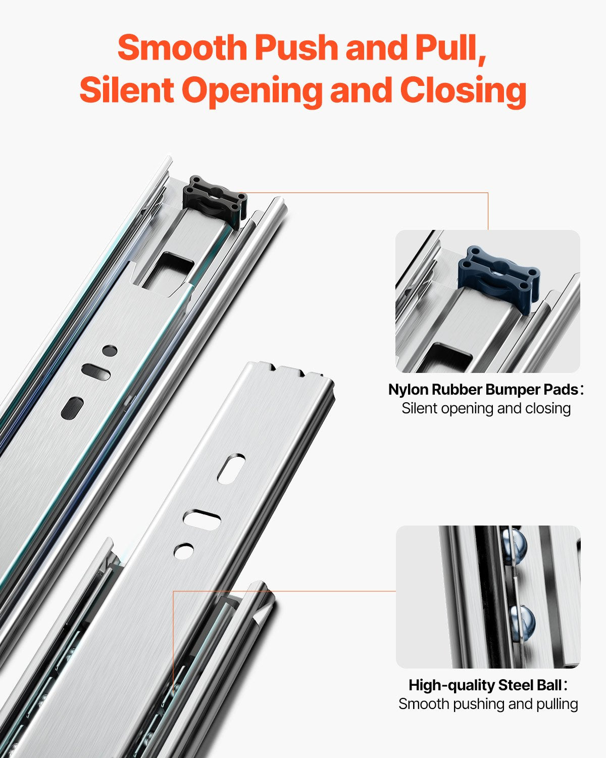 - Three-Section Full Extension: No more searching! The three-section full extension design provides complete access to your drawer contents with ease. Compared to two-section slides, this eliminates blind spots and makes operations much more convenient