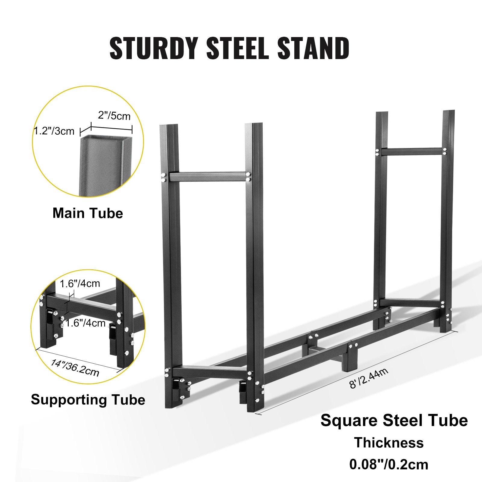 - 【HEAVY-DUTY STEEL FRAME】- Our wood storage rack is made of 2 mm/0.08" thick square steel tube, with main tubular size (LxW): 30x50 mm/ 1.2"x2", and supporting tubular size (LxW): 40x40 mm/ 1.6"x1.6". Such high-strength steel is sturdy and durable to use in a long-lasting time.