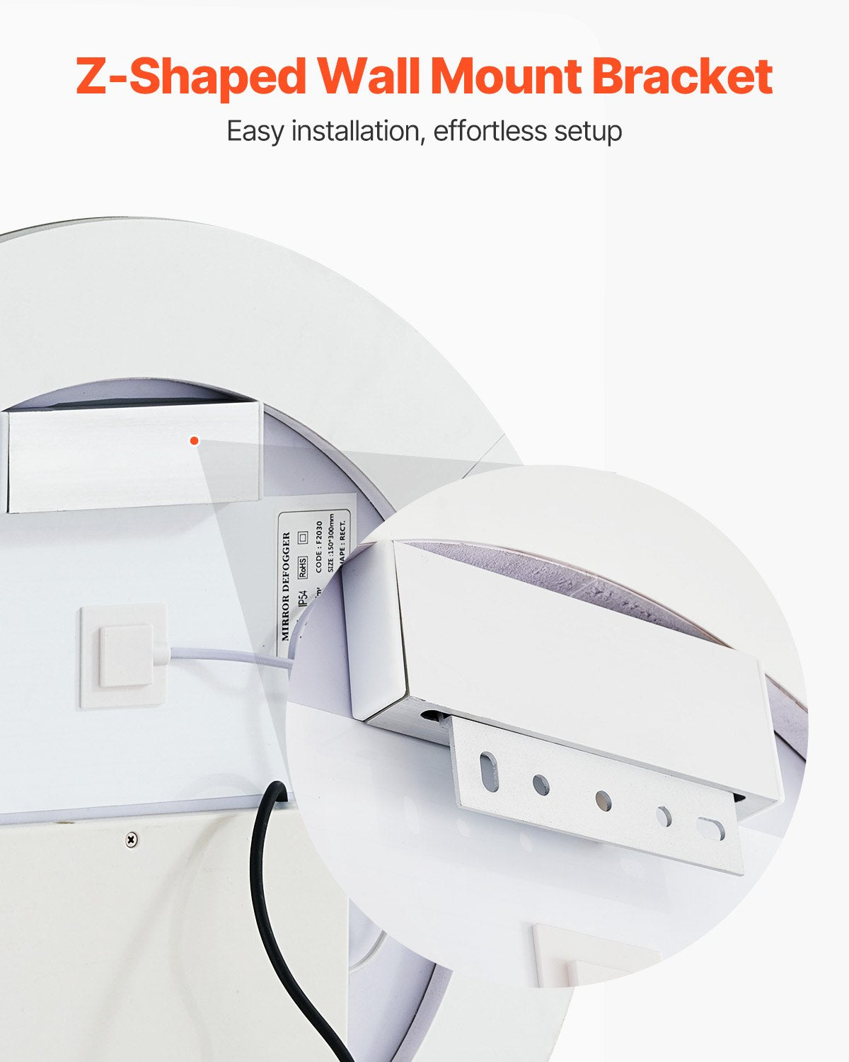 - Easy to Install: Secure the Z-shaped wall bracket to the wall, then hang the led lighted bathroom mirror vertically on the bracket. The installation is quick and effortless, with no complicated steps—just plug it in and you're ready to use.