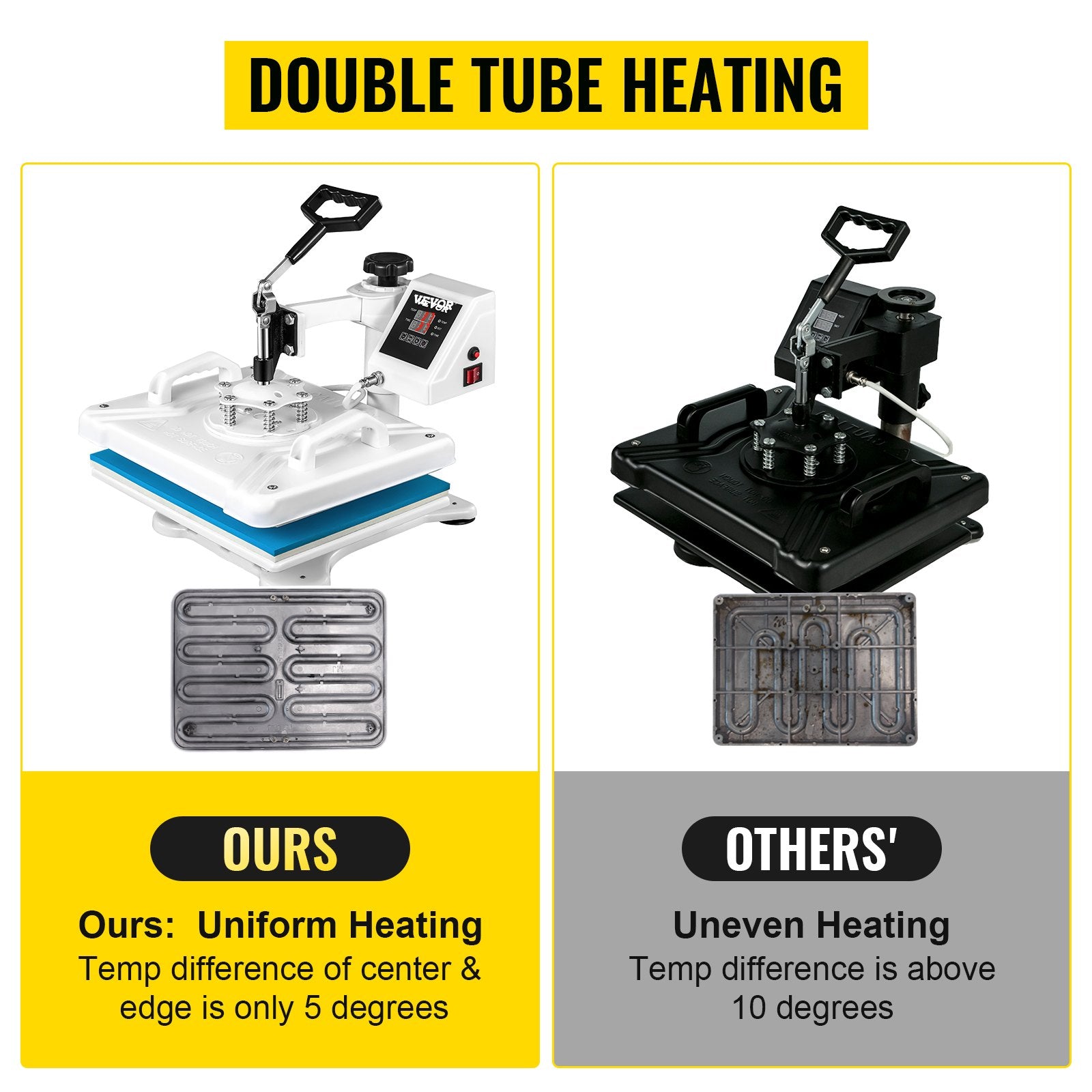 - Pro Heating System: Built-in latest dual-tube fast-heating tech distributes edge-to-edge heat quickly and evenly. Up to 50% improvement of the temperature consistency for more uniform heating and better shirt printing effect with two layers insulation pads!