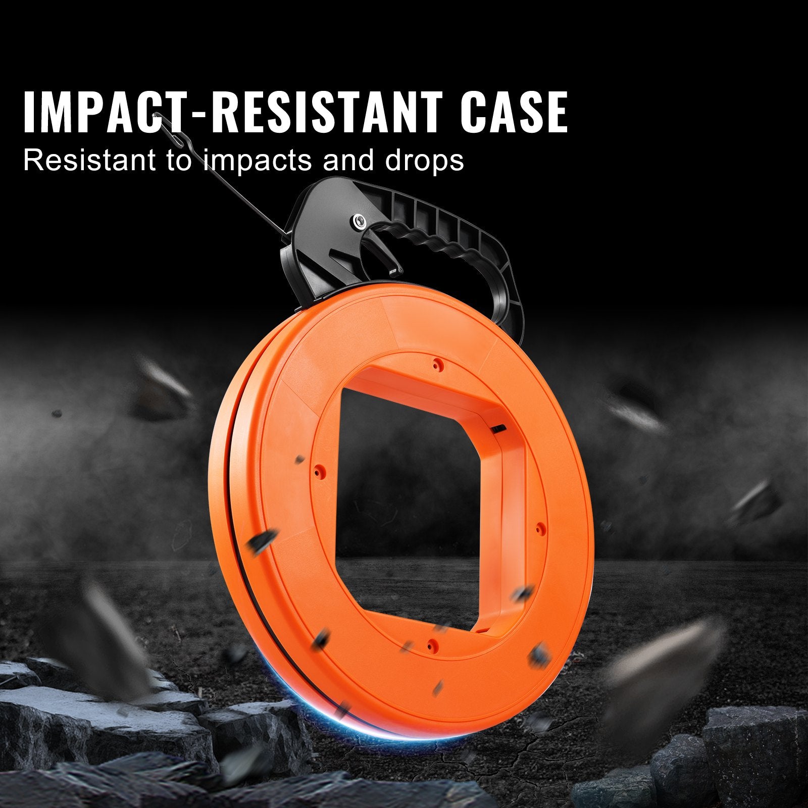 - Impact-Resistant Protection: Constructed with a robust ABS and PP casing, our fishing tape wire puller can withstand everyday drops without cracking. Paired with the handle, it ensures stability and requires less effort when retracting the tape, boosting your productivity.