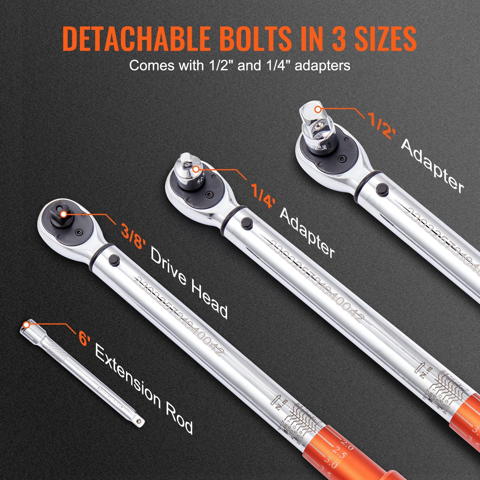 - High Compatibility: The adjustable torque wrench comes equipped with drive adapters and extension bars, making it an incredibly versatile tool that can be used for a wide range of applications. Compatible with both 1/2" and 1/4" bolt sizes, this wrench is perfect for use in tight or deep spaces where access is limited.