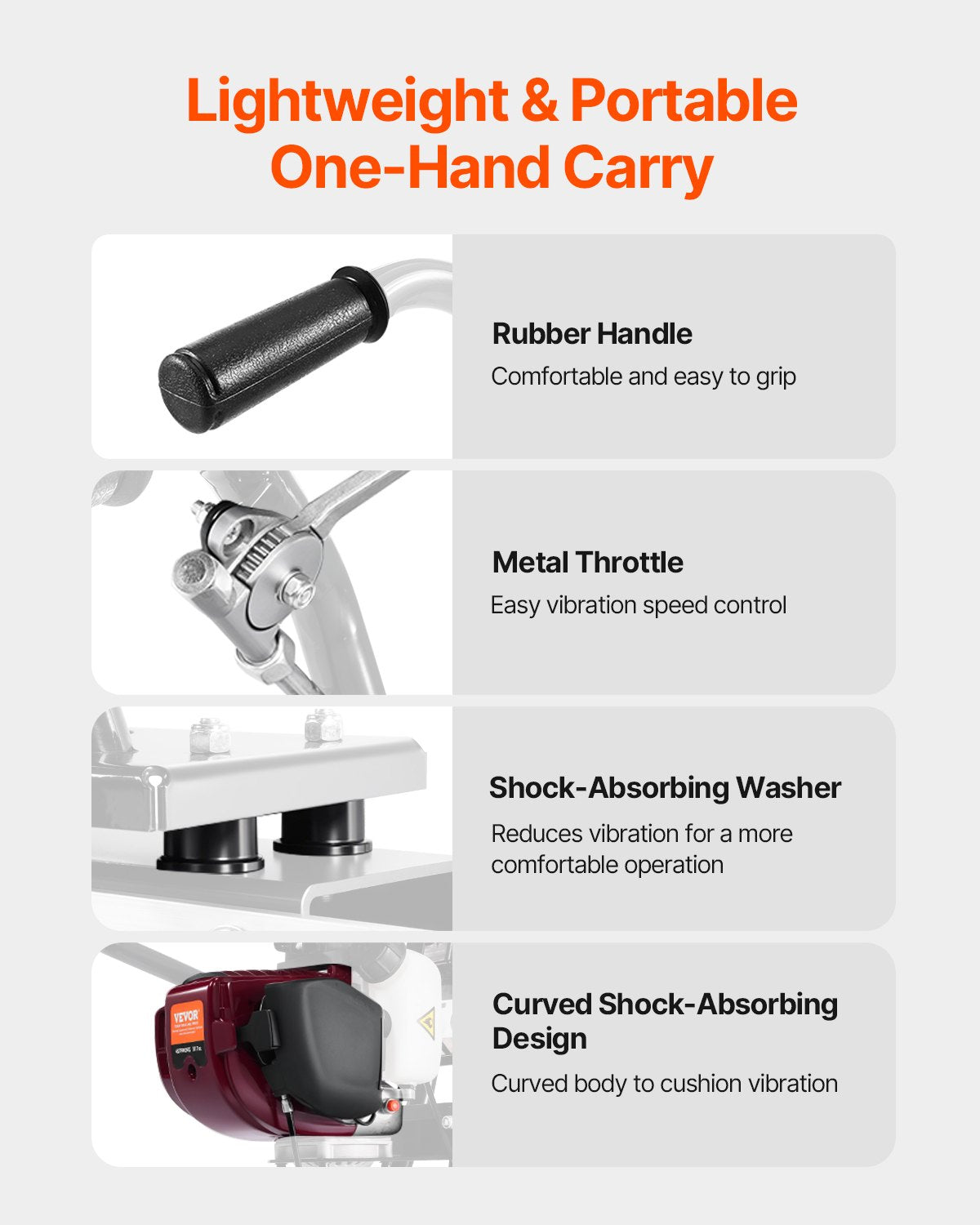 - Shock-Absorbing Design: A rubberized handle provides a secure grip, while shock-absorbing washers and a curved damping structure reduce vibration, ensuring stability and comfort.