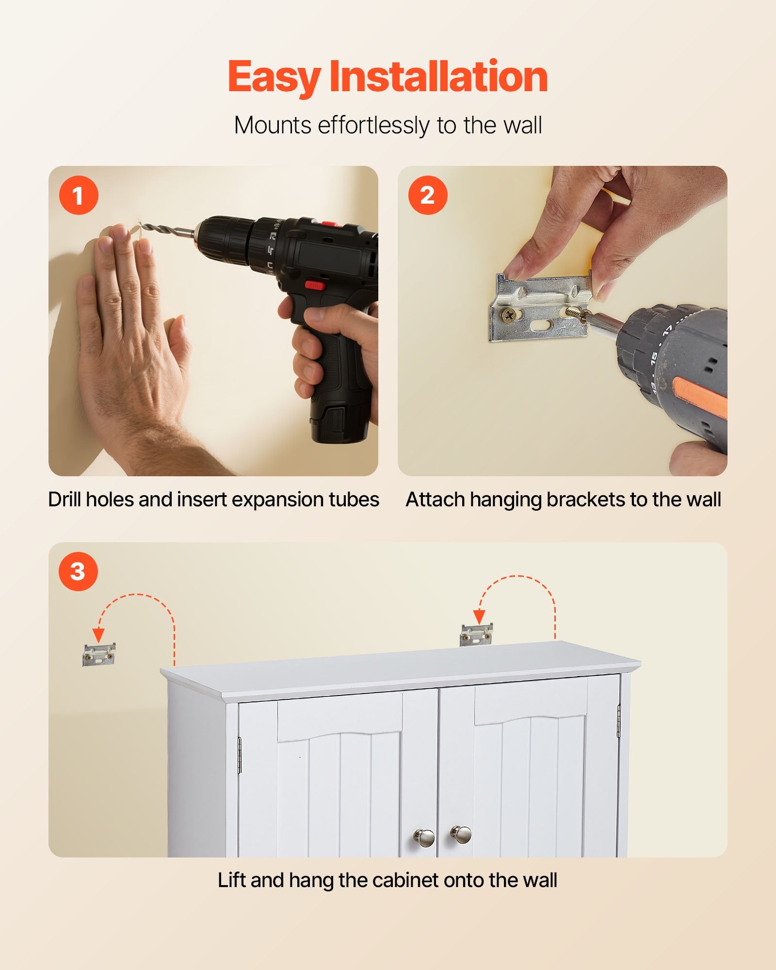 - Easy to Install: This bathroom wall storage cabinet features a wall-mounted design, coming with a full set of installation tools and detailed instructions. No professional skills or extra tools are needed—beginners can quickly finish assembly