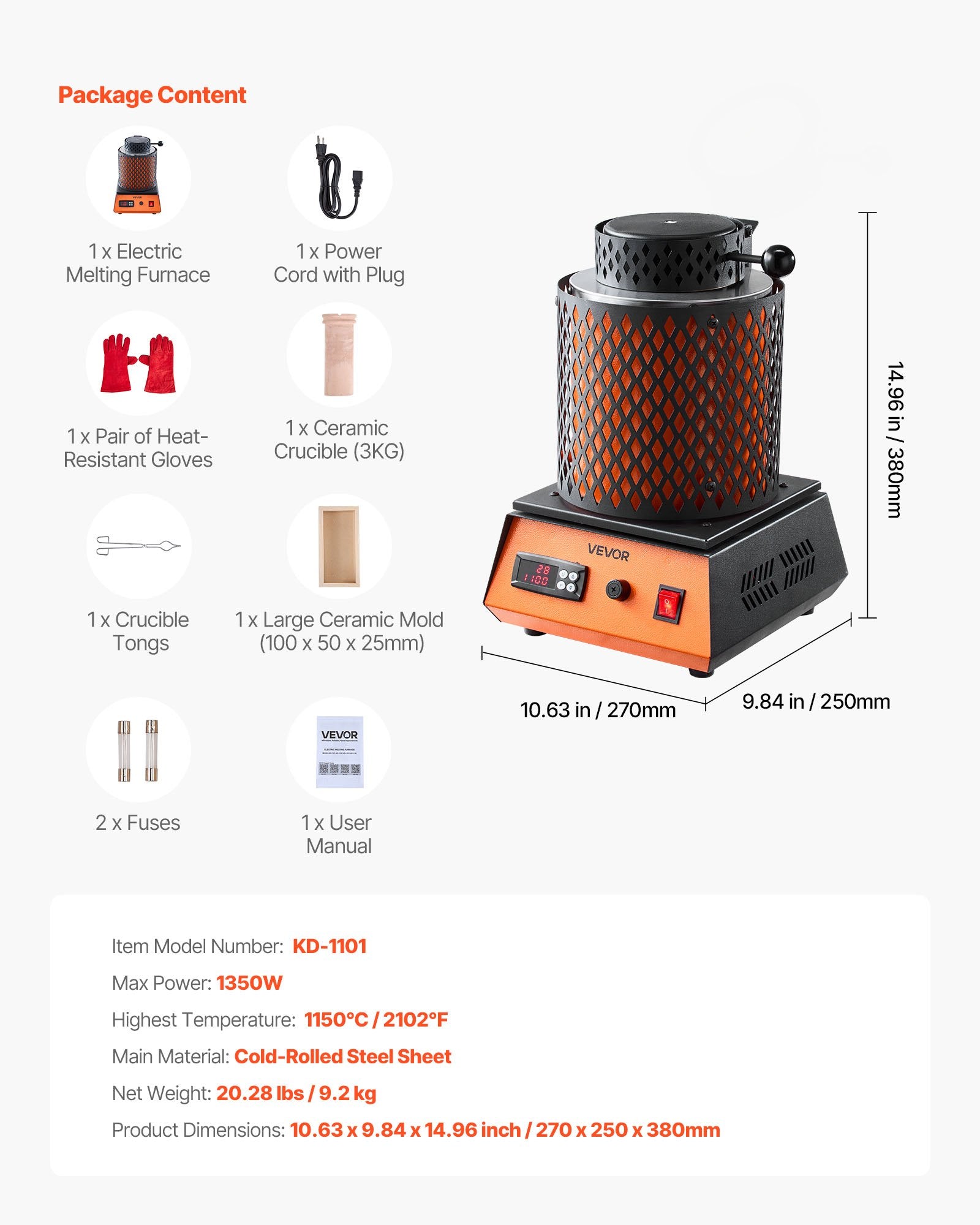 - Smart Control: VEVOR electric metal smelter foundry features a digital control panel with a clear, intuitive display of temperature and settings. Even beginners can operate it effortlessly, making precise adjustments and monitoring each melting session stress-free and straightforward