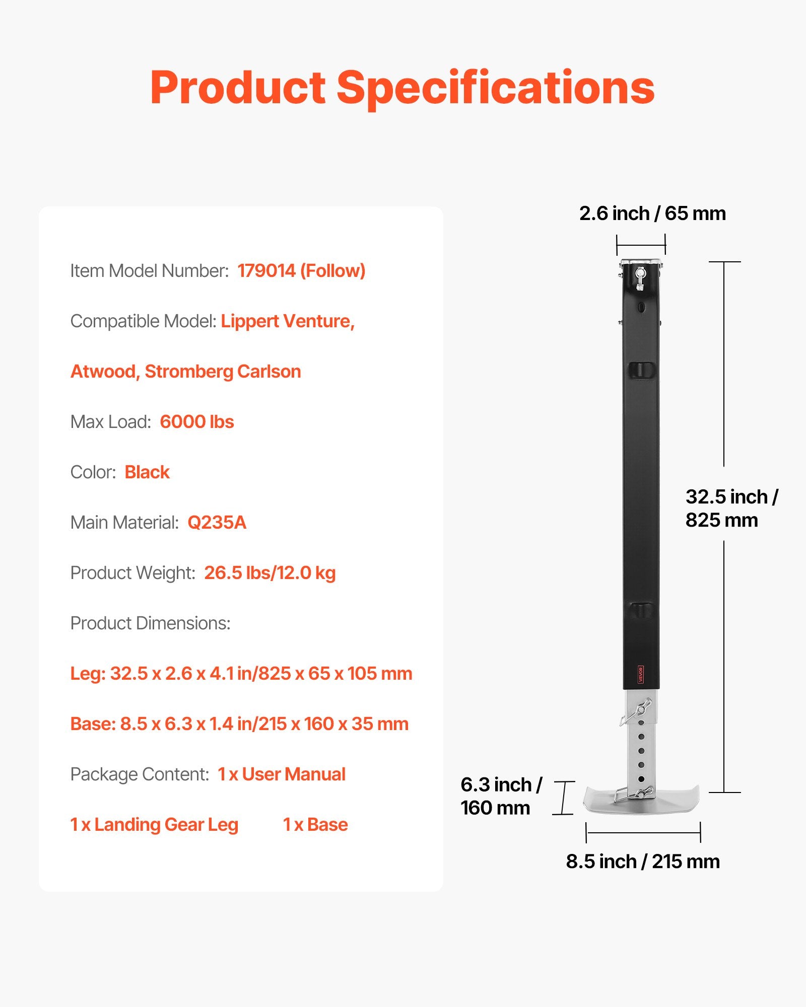 - Easy to Install: The 5th wheel landing gear leg comes with a drop leg and snap pin. It matches factory dimensions for hassle-free installation—get the job done in under 30 minutes and save on service costs